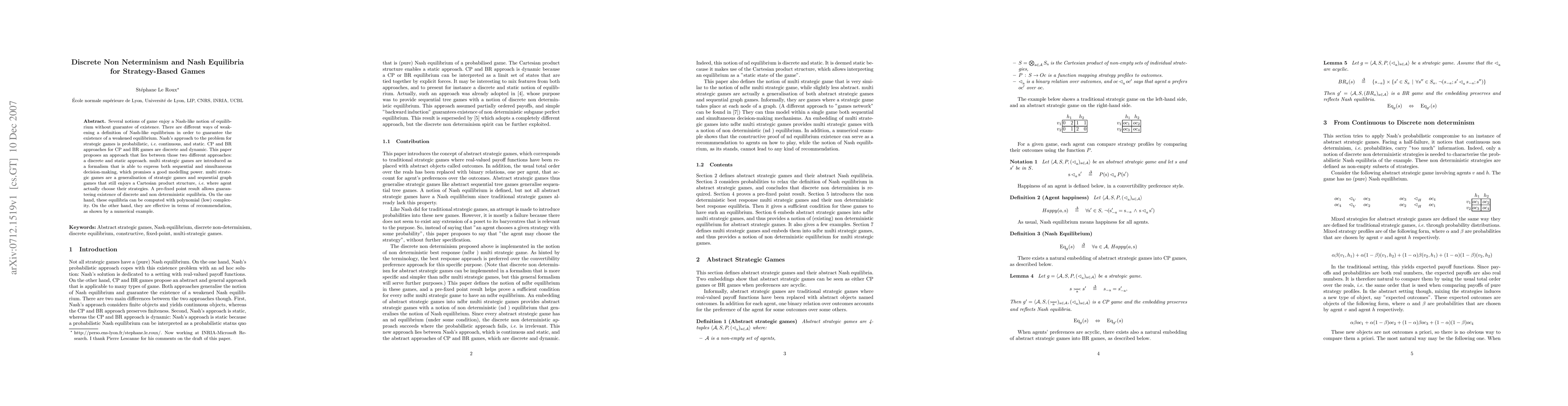 Several notions of game enjoy a Nash-like notion of equilibrium without guarantee of existence. There are different ways of weakening a definition of Nash-like equilibrium in order to guarantee the existence of a weakened equilibrium. Nash's approach to the problem for strategic games is probabilistic, \textit{i.e.} continuous, and static. CP and BR approaches for CP and BR games are discrete and dynamic. This paper proposes an approach that lies between those two different approaches: a discrete and static approach. multi strategic games are introduced as a formalism that is able to express both sequential and simultaneous decision-making, which promises a good modelling power. multi strategic games are a generalisation of strategic games and sequential graph games that still enjoys a Cartesian product structure, \textit{i.e.} where agent actually choose their strategies. A pre-fixed point result allows guaranteeing existence of discrete and non deterministic equilibria. On the one hand, these equilibria can be computed with polynomial (low) complexity. On the other hand, they are effective in terms of recommendation, as shown by a numerical example.