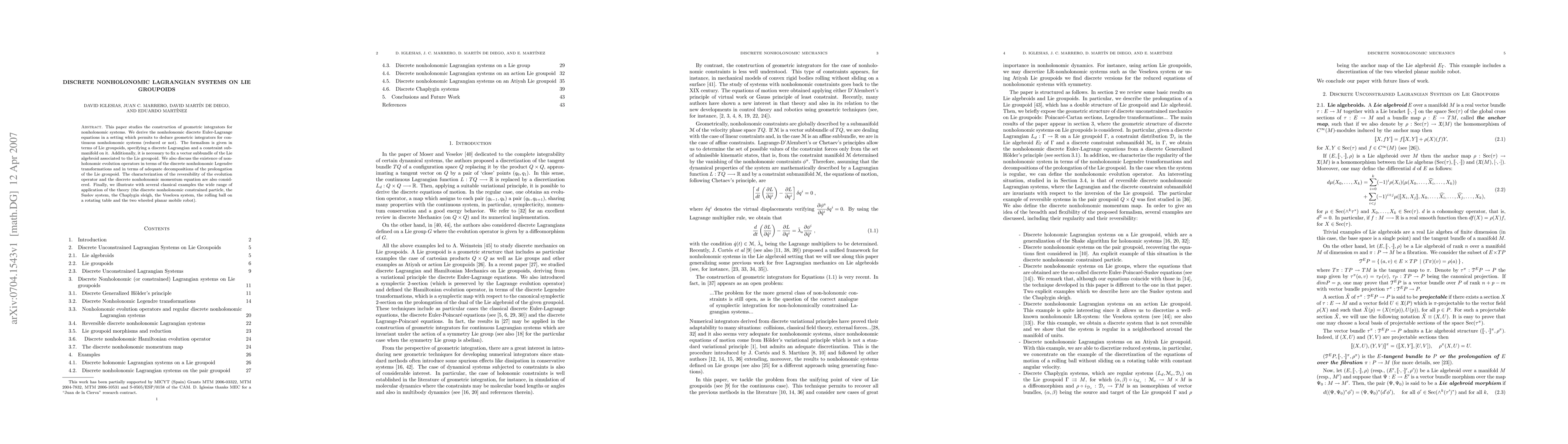 This paper constructs geometric integrators for nonholonomic systems using Lie groupoids, deriving discrete Euler-Lagrange equations and discussing the existence of nonholonomic evolution operators, illustrated with classical mechanical examples.
