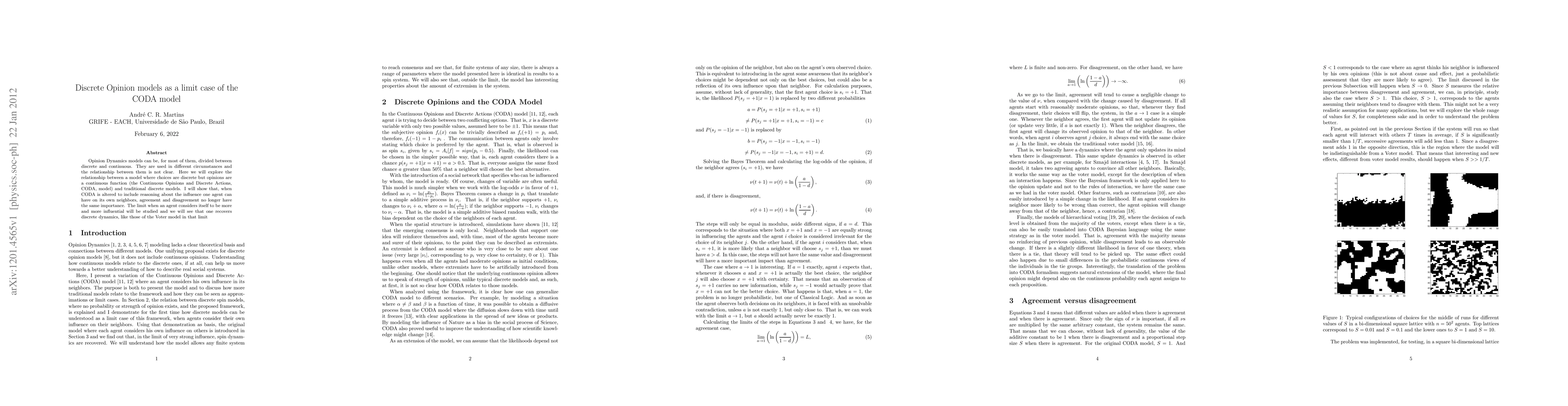 Opinion Dynamics models can be, for most of them, divided between discrete and continuous. They are used in different circumstances and the relationship between them is not clear. Here we will explore the relationship between a model where choices are discrete but opinions are a continuous function (the Continuous Opinions and Discrete Actions, CODA, model) and traditional discrete models. I will show that, when CODA is altered to include reasoning about the influence one agent can have on its own neighbors, agreement and disagreement no longer have the same importance. The limit when an agent considers itself to be more and more influential will be studied and we will see that one recovers discrete dynamics, like those of the Voter model in that limit