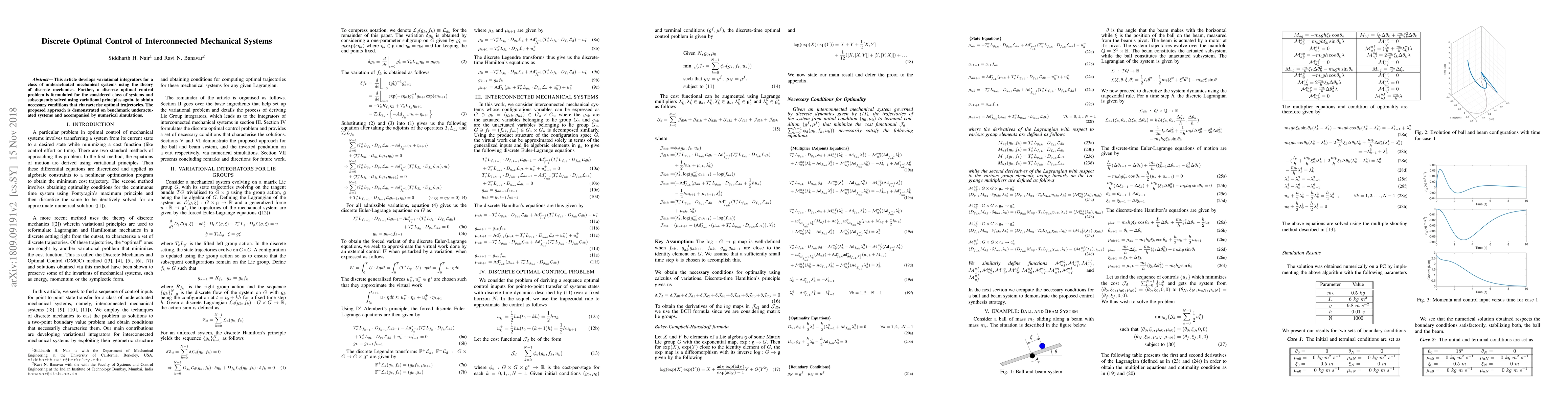 This paper introduces variational integrators for underactuated mechanical systems and formulates a discrete optimal control problem, solving it via variational principles to derive optimal trajectory conditions. Numerical simulations on benchmark systems validate the proposed method.