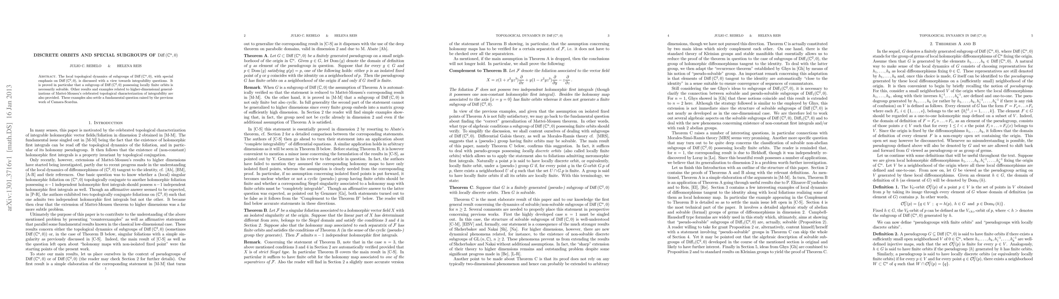 The local topological dynamics of subgroups of ${\rm Diff} ({\mathbb C^n}, 0)$, with special emphasis on ${\rm Diff} ({\mathbb C^2}, 0)$, is discussed with a view towards integrability questions. It is proved in particular that a subgroup of ${\rm Diff} ({\mathbb C^2}, 0)$ possessing locally finite orbits is necessarily solvable. Other results and examples related to higher-dimensional generalizations of Mattei-Moussu's celebrated topological characterization of integrability are also provided. These examples also settle a fundamental question raised by the previous work of Camara-Scardua.