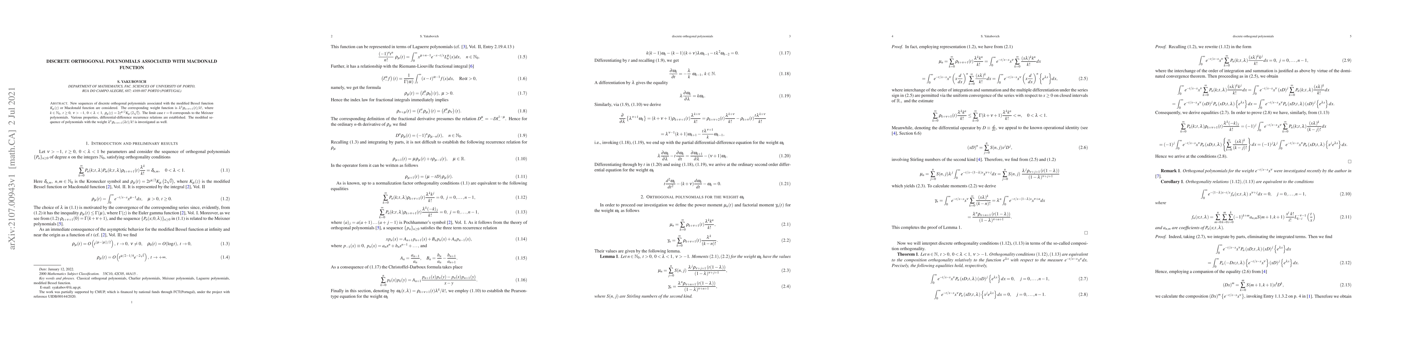 This paper introduces new sequences of discrete orthogonal polynomials linked to the Macdonald function, characterized by a specific weight function. It explores properties and recurrence relations, with a special focus on the modified sequence of polynomials and their behavior when the limit case $t=0$ is considered.