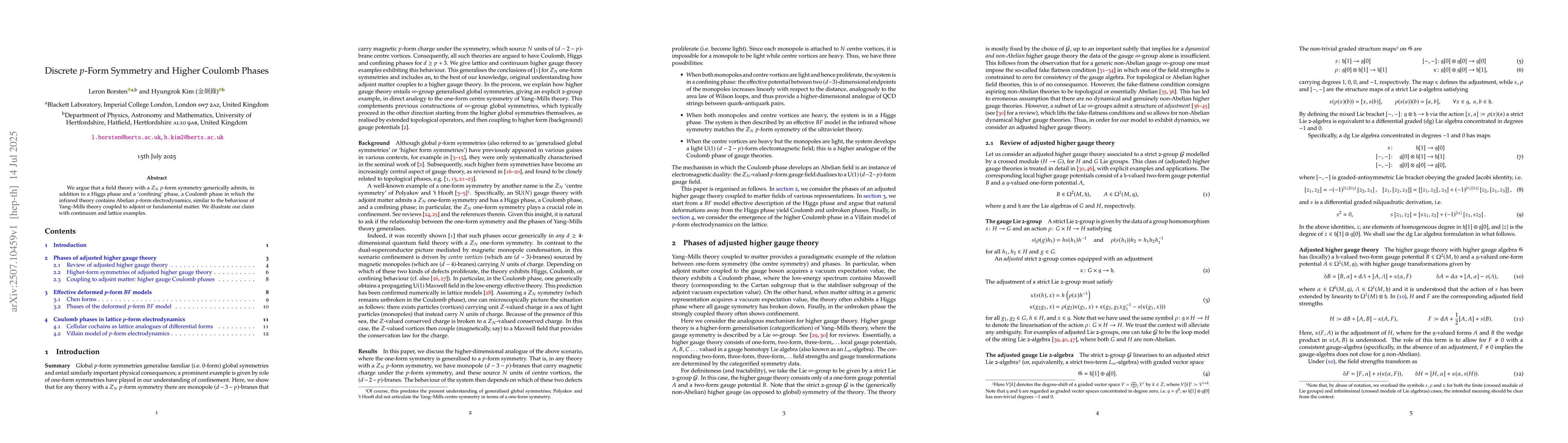 We argue that a field theory with a $\mathbb Z_N$ $p$-form symmetry generically admits, in addition to a Higgs phase and a 'confining' phase, a Coulomb phase in which the infrared theory contains Abelian $p$-form electrodynamics, similar to the behaviour of Yang-Mills theory coupled to adjoint or fundamental matter. We illustrate our claim with continuum and lattice examples.
