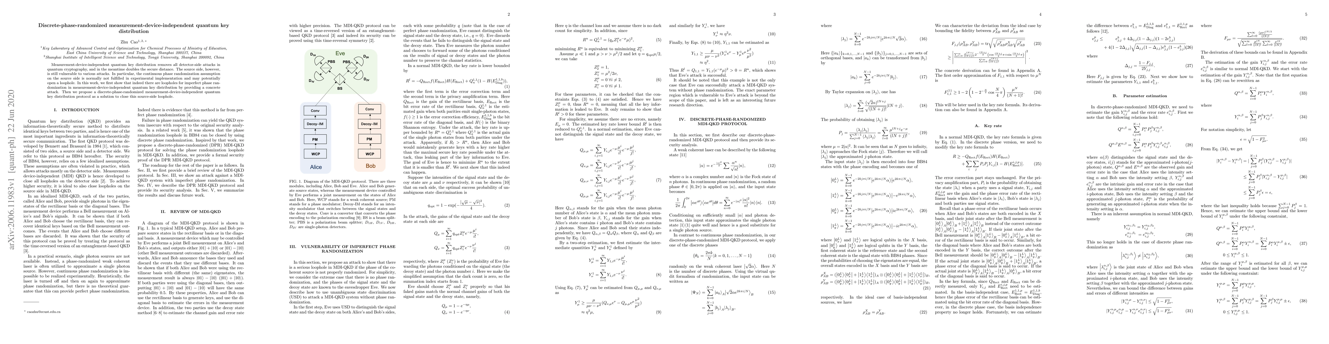 This paper identifies a loophole in measurement-device-independent quantum key distribution due to imperfect phase randomization and proposes a new protocol that uses discrete-phase randomization to close this source-side vulnerability. The new protocol aims to enhance security by addressing the limitations of continuous phase randomization in practical implementations.