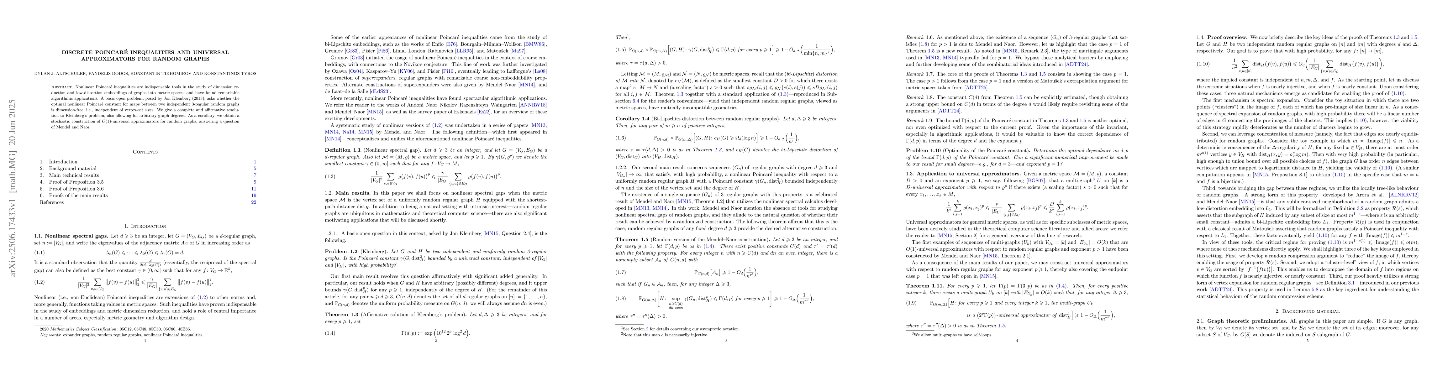 Nonlinear Poincar\'e inequalities are indispensable tools in the study of dimension reduction and low-distortion embeddings of graphs into metric spaces, and have found remarkable algorithmic applications. A basic open problem, posed by Jon Kleinberg (2013), asks whether the optimal nonlinear Poincar\'e constant for maps between two independent $3$-regular random graphs is dimension-free, i.e., independent of vertex-set sizes. We give a complete and affirmative resolution to Kleinberg's problem, also allowing for arbitrary graph degrees. As a corollary, we obtain a stochastic construction of $O(1)\text{-universal}$ approximators for random graphs, answering a question of Mendel and Naor.