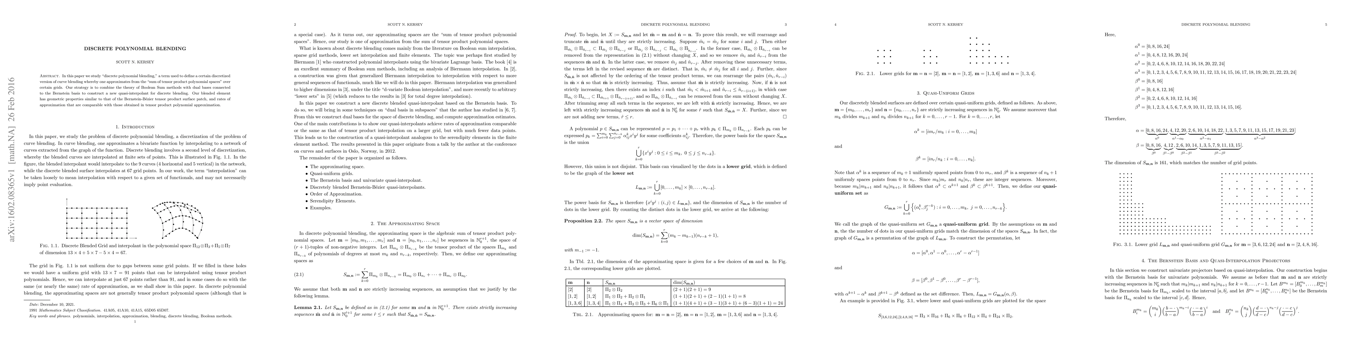 In this paper we study "discrete polynomial blending," a term used to define a certain discretized version of curve blending whereby one approximates from the "sum of tensor product polynomial spaces" over certain grids. Our strategy is to combine the theory of Boolean Sum methods with dual bases connected to the Bernstein basis to construct a new quasi-interpolant for discrete blending. Our blended element has geometric properties similar to that of the Bernstein-B\'ezier tensor product surface patch, and rates of approximation that are comparable with those obtained in tensor product polynomial approximation.
