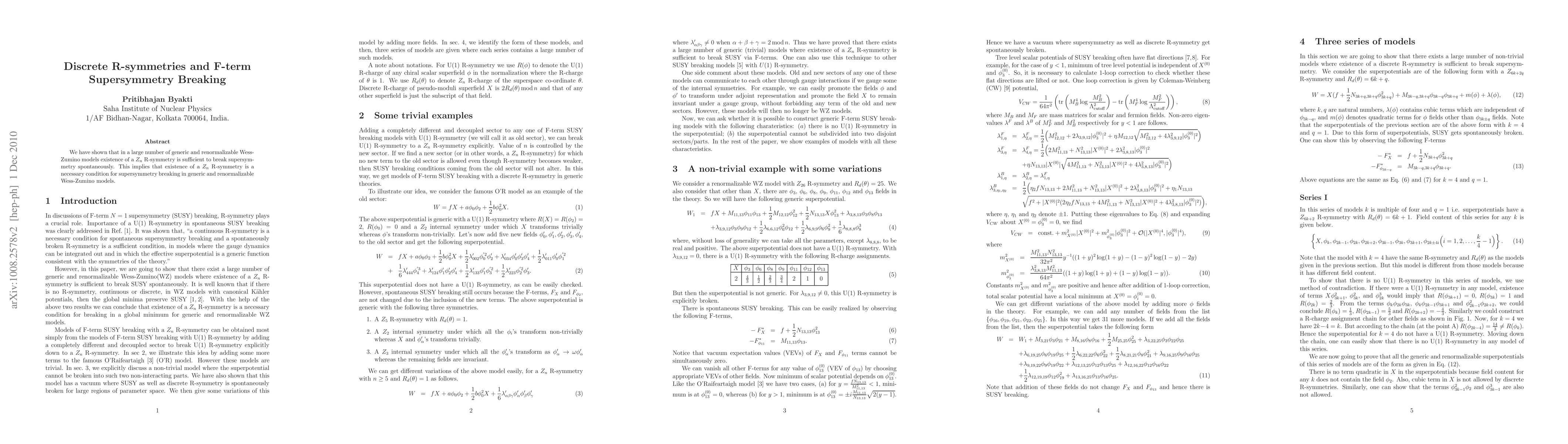 This paper demonstrates that in many generic and renormalizable Wess-Zumino models, the presence of a $Z_n$ R-symmetry is sufficient for spontaneous supersymmetry breaking. It concludes that a $Z_n$ R-symmetry is a necessary condition for such breaking in these models.