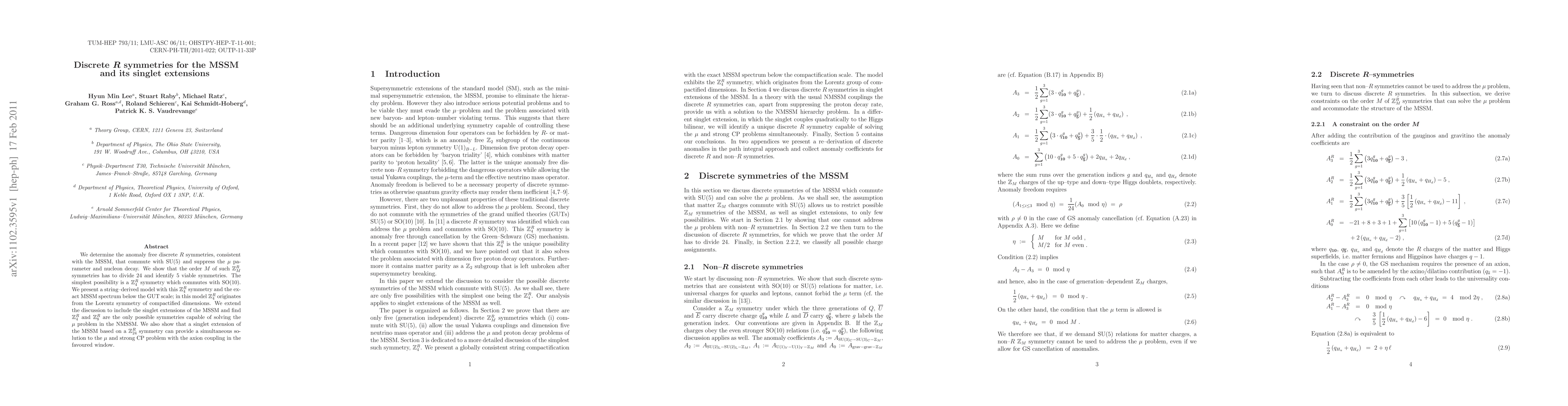 This paper identifies discrete R symmetries that are consistent with the Minimal Supersymmetric Standard Model (MSSM) and its singlet extensions, focusing on those that suppress the $\mu$ parameter and nucleon decay. The study finds that viable symmetries must divide 24, with $Z_4^R$ and $Z_8^R$ being the most promising for solving the $\mu$ problem in the Next-to-MSSM (NMSSM).