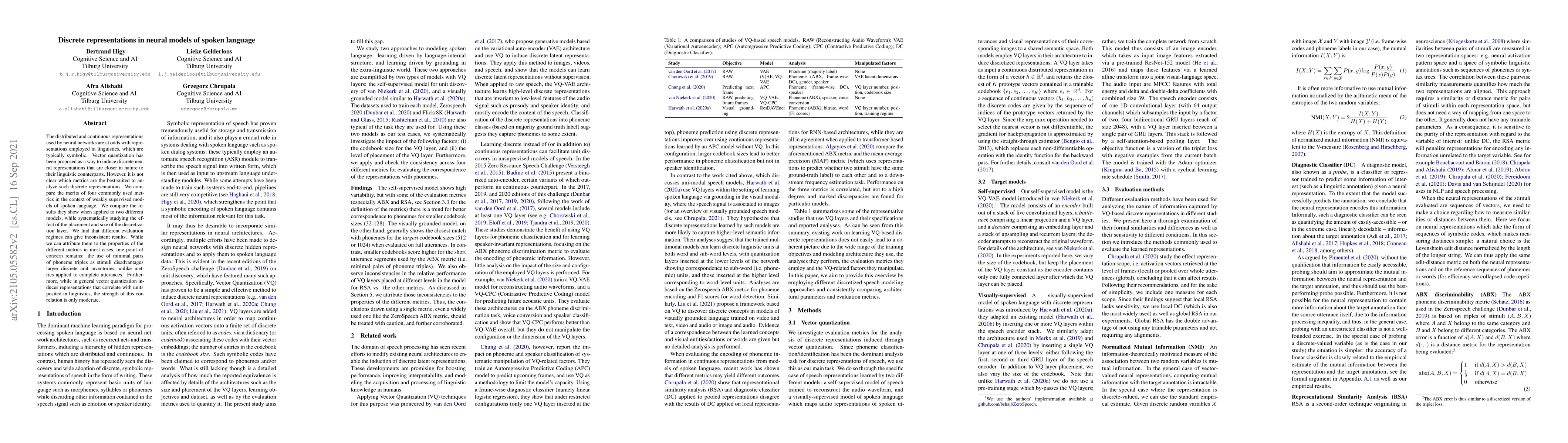 This paper investigates the effectiveness of four metrics for analyzing discrete representations in neural models of spoken language, finding that different evaluation regimes yield inconsistent results. It concludes that the use of minimal pairs of phoneme triples disadvantages larger discrete inventories and that vector quantization only moderately correlates with linguistic units.