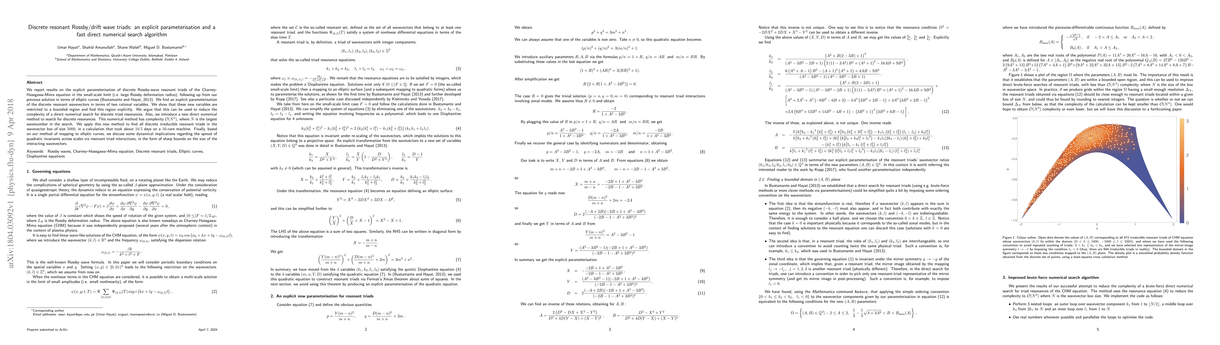 This paper presents an explicit parameterisation of discrete resonant triads in Rossby waves, using elliptic curves, and introduces a new ${\mathcal{O}}(N^3)$ complexity numerical search algorithm to find these triads efficiently. The method was applied to find all discrete triads in a wavevector box of size 5000, demonstrating its practical utility.
