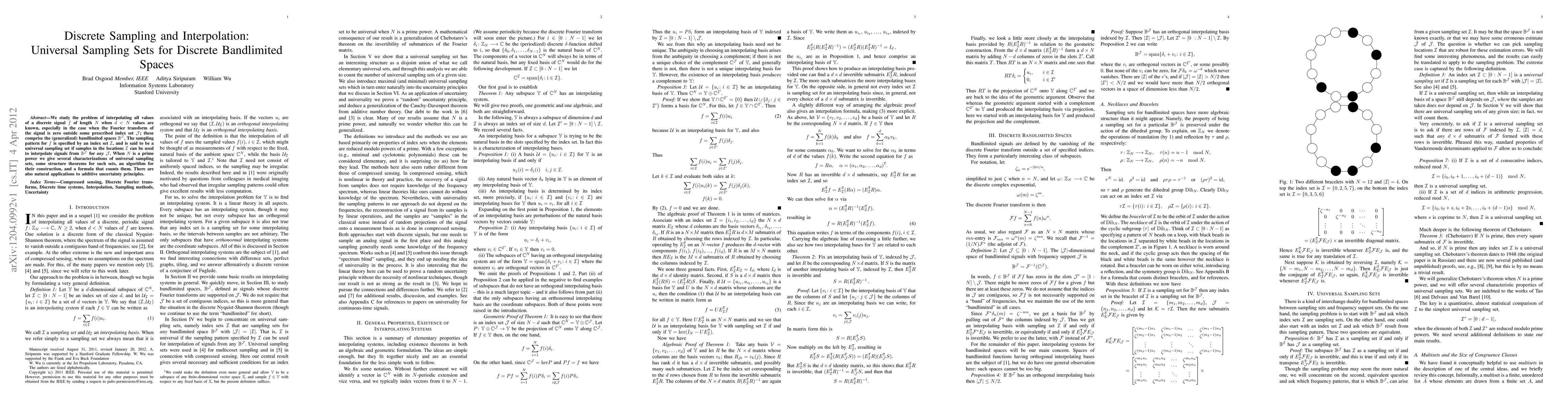 This research paper introduces universal sampling sets for discrete bandlimited spaces, providing characterizations, structure theorems, and algorithms to construct these sets, with applications in additive uncertainty principles.