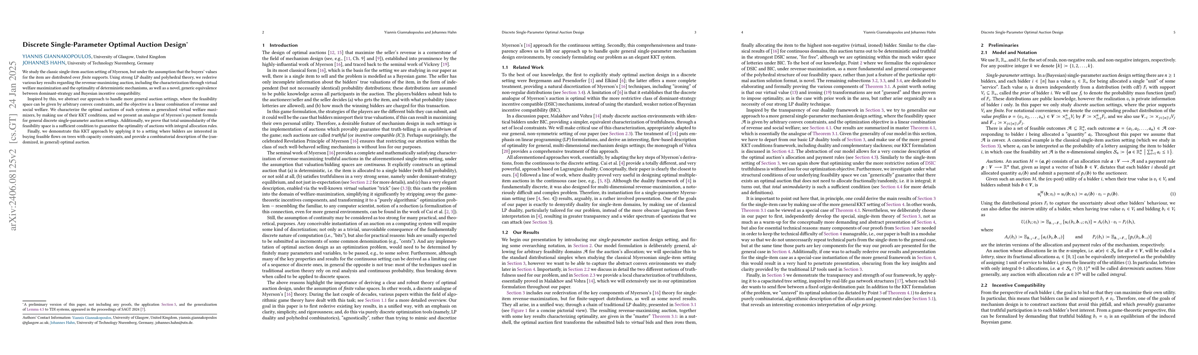 This paper explores revenue-maximizing auctions in discrete settings with finite value distributions, applying LP duality and polyhedral theory. It extends these results to general convex constraint spaces, proving that optimal auctions maximize generalized virtual welfare and presenting a novel equivalence between dominant-strategy and Bayesian incentive compatibility.