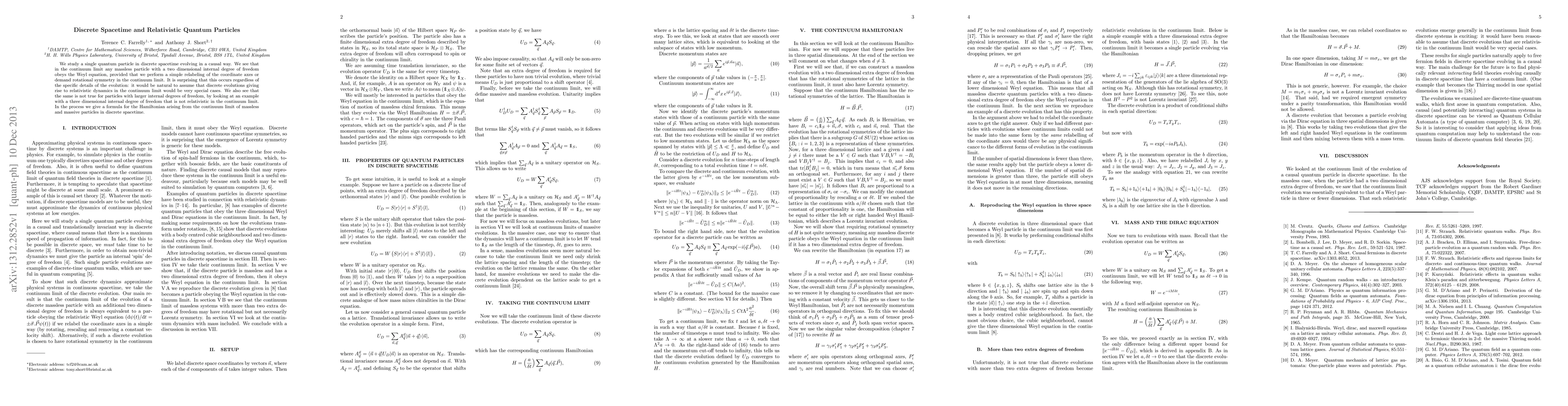 This paper explores a quantum particle in discrete spacetime, revealing that massless particles with a two-dimensional internal degree of freedom obey the Weyl equation in the continuum limit, regardless of specific evolution details. It also demonstrates that particles with larger internal degrees of freedom do not exhibit this behavior, providing a formula for the Hamiltonian in both massless and massive cases.