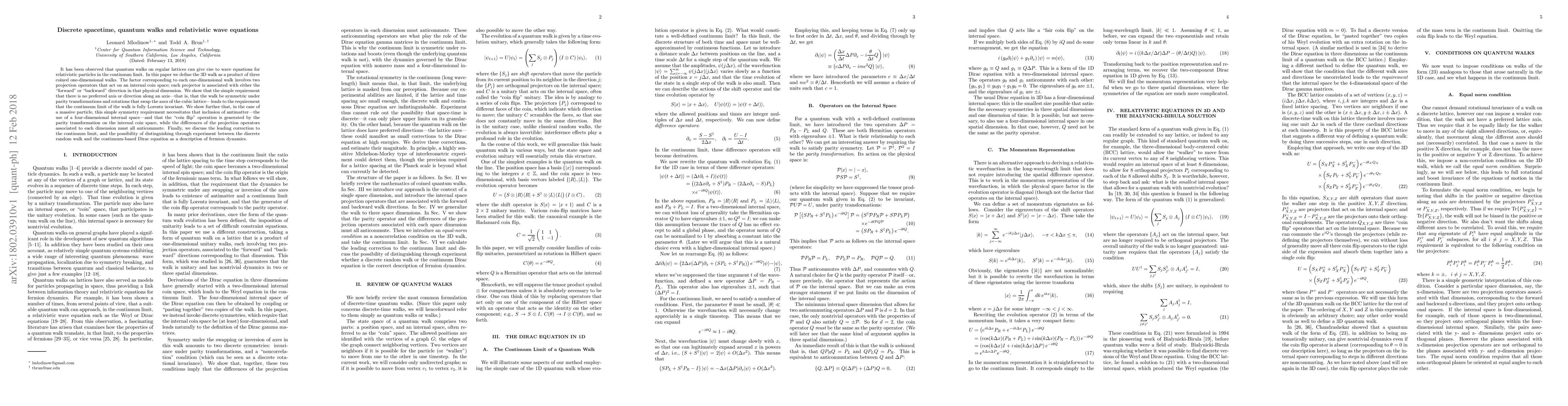It has been observed that quantum walks on regular lattices can give rise to wave equations for relativistic particles in the continuum limit. In this paper we define the 3D walk as a product of three coined one-dimensional walks. The factor corresponding to each one-dimensional walk involves two projection operators that act on an internal coin space, each projector is associated with either the "forward" or "backward" direction in that physical dimension. We show that the simple requirement that there is no preferred axis or direction along an axis---that is, that the walk be symmetric under parity transformations and rotations that swap the axes of the cubic lattice---leads to the requirement that the continuum limit of the walk is fully Lorentz invariant. We show further that, in the case of a massive particle, this simple symmetry requirement necessitates that inclusion of antimatter---the use of a four-dimensional internal space---and that the "coin flip" operation is generated by the parity transformation on the internal coin space, while the differences of the projection operators associated to each dimension must all anticommute. Finally, we discuss the leading correction to the continuum limit, and the possibility of distinguishing through experiment between the discrete random walk and the continuum-based Dirac equation as a description of fermion dynamics.