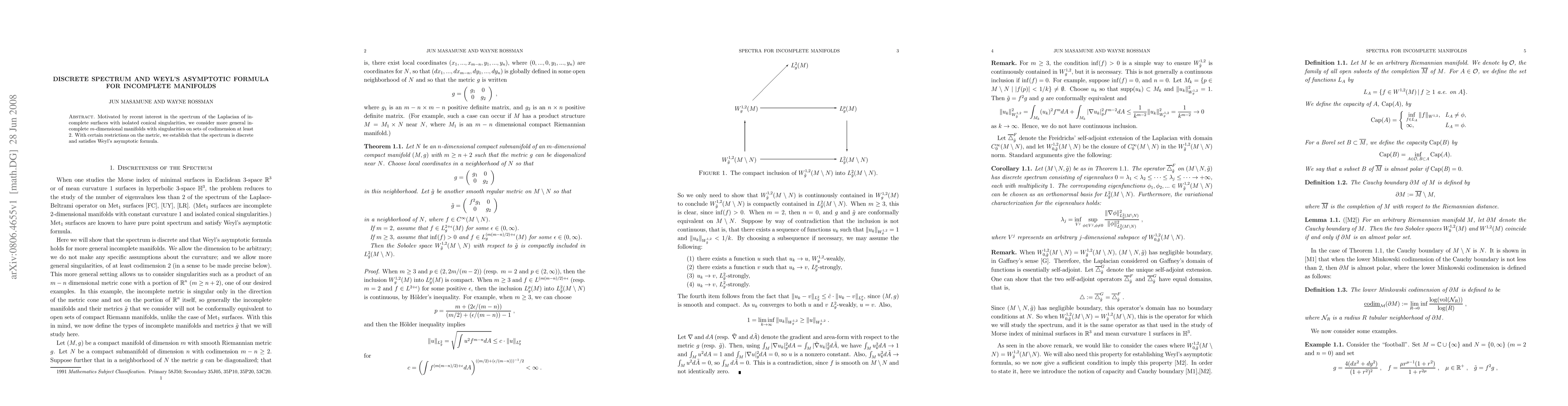 Motivated by recent interest in the spectrum of the Laplacian of incomplete surfaces with isolated conical singularities, we consider more general incomplete m-dimensional manifolds with singularities on sets of codimension at least 2. With certain restrictions on the metric, we establish that the spectrum is discrete and satisfies Weyl's asymptotic formula.