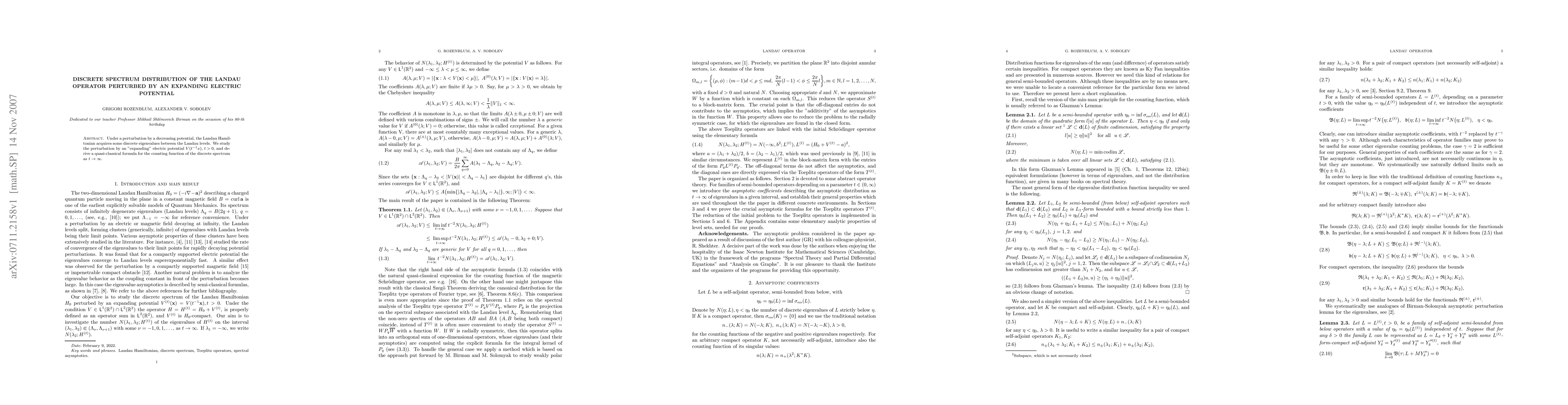 Under a perturbation by a decaying electric potential, the Landau Hamiltonian acquires some discrete eigenvalues between the Landau levels. We study the perturbation by an "expanding" electric potential $V(t^{-1}x)$, $t>0$, and derive a quasi-classical formula for the counting function of the discrete spectrum as $t\to \infty$.