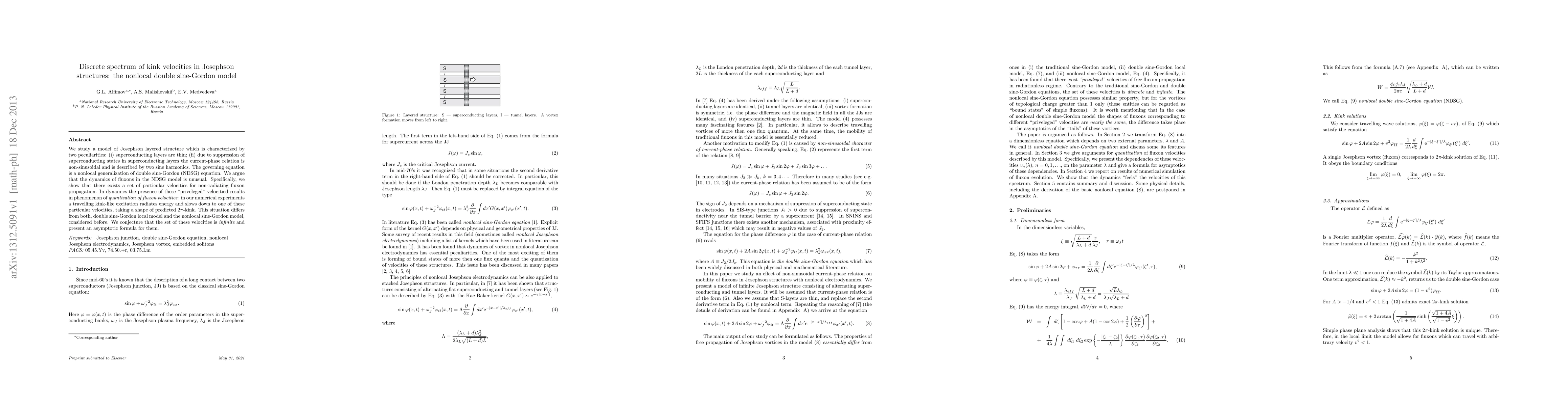 This paper investigates the nonlocal double sine-Gordon model for Josephson structures with non-sinusoidal current-phase relations, revealing a set of "privileged" velocities for non-radiating fluxon propagation. Numerical experiments show that kink-like excitations slow down to these quantized velocities, differing from both local and nonlocal sine-Gordon models.