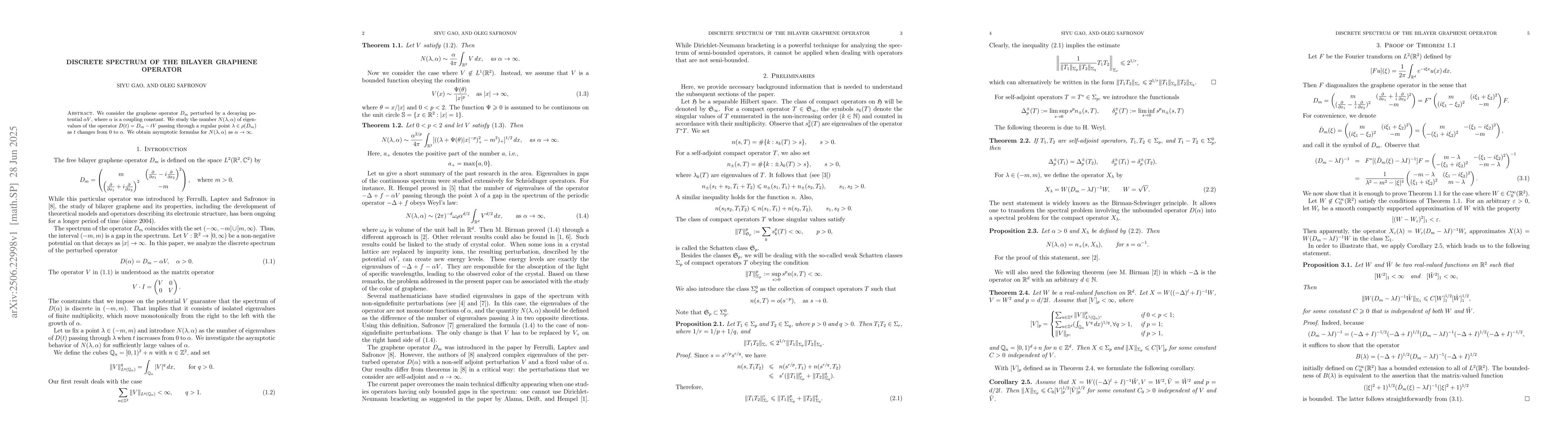 We consider the graphene operator $D_m$ perturbed by a decaying potential $\alpha V$, where $\alpha$ is a coupling constant. We study the number $N(\lambda,\alpha)$ of eigenvalues of the operator $D(t)=D_m-tV$ passing through a regular point $\lambda\in\rho(D_m)$ as $t$ changes from $0$ to $\alpha$. We obtain asymptotic formulas for $N(\lambda,\alpha)$ as $\alpha\to\infty$.