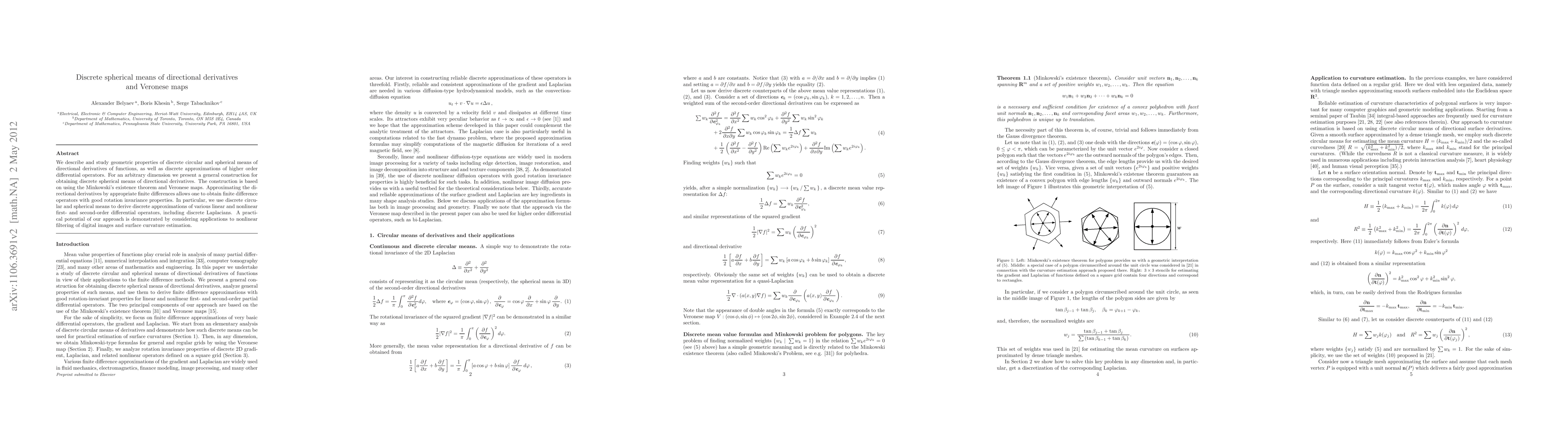 This paper constructs discrete spherical means of directional derivatives using the Minkowski existence theorem and Veronese maps, providing finite difference operators with good rotation invariance. Applications include nonlinear filtering of digital images and surface curvature estimation.
