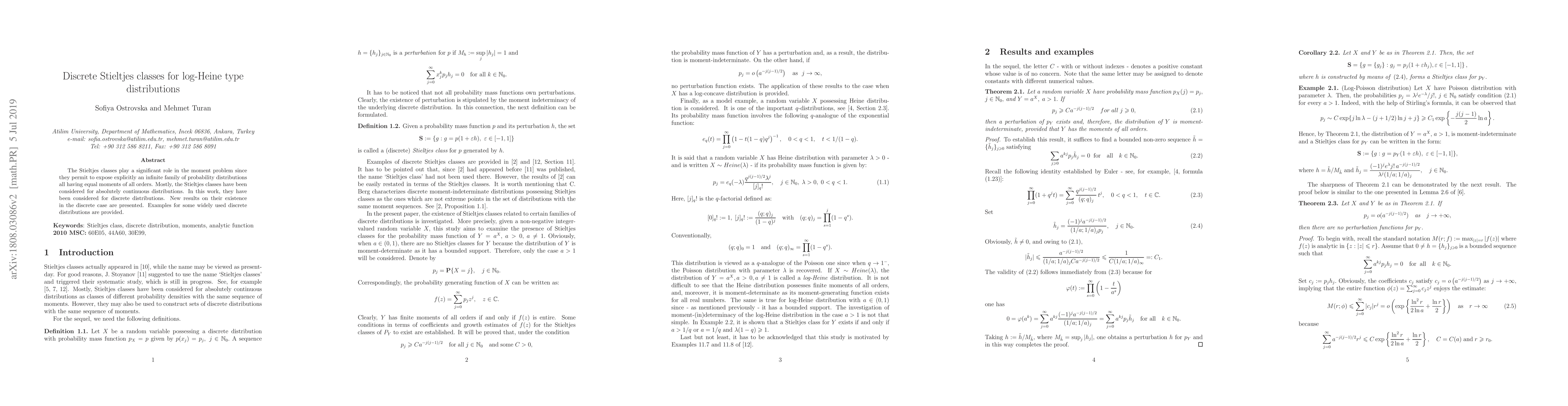 This paper introduces a novel method for constructing discrete Stieltjes classes for log-Heine type distributions, addressing the challenge of identifying distributions with identical moments when the original distribution is moment-indeterminate. Examples of widely used discrete distributions are provided to illustrate the approach.