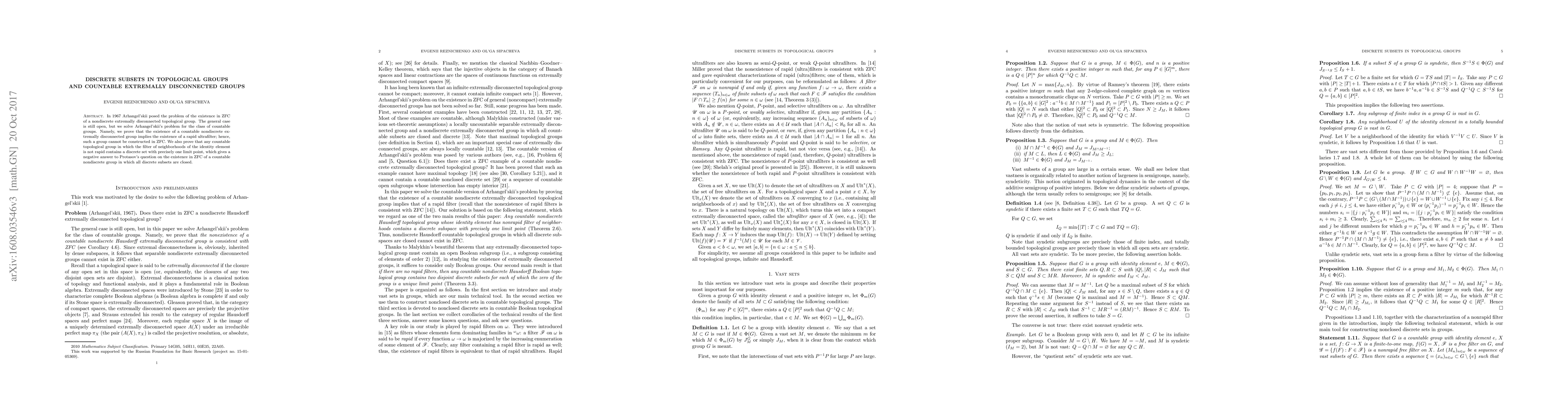 It is proved that any countable topological group in which the filter of neighborhoods of the identity element is not rapid contains a discrete set with precisely one nonisolated point. This gives a negative answer to Protasov's question on the existence in ZFC of a countable nondiscrete group in which all discrete subsets are closed. It is also proved that the existence of a countable nondiscrete extremally disconnected group implies the existence of a rapid ultrafilter and, hence, a countable nondiscrete extremally disconnected group cannot be constructed in ZFC.