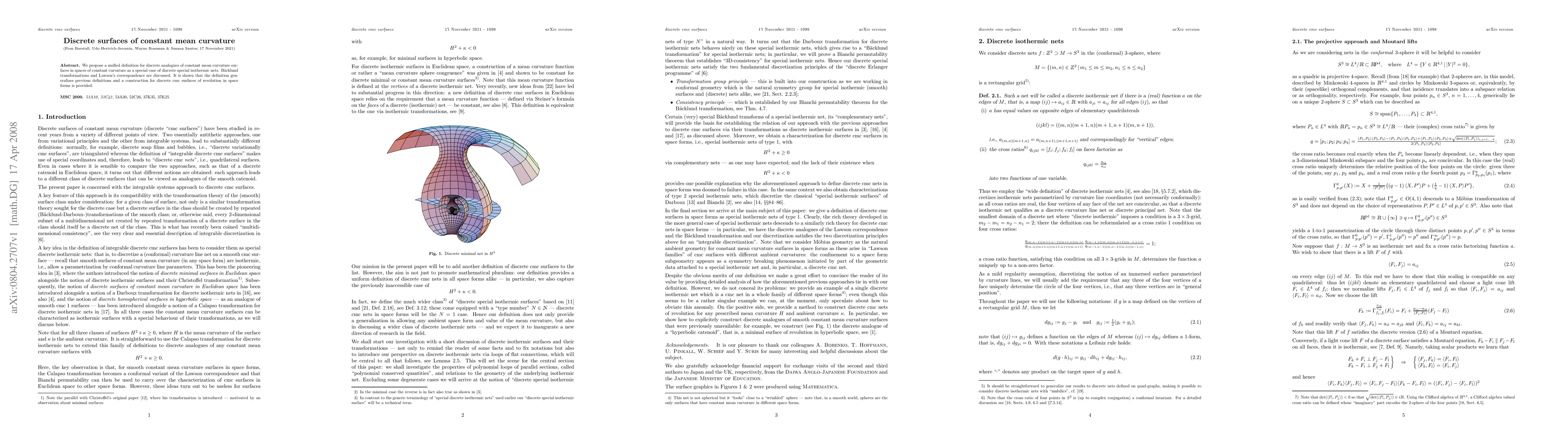 This paper introduces a unified definition for discrete surfaces of constant mean curvature as part of discrete special isothermic nets, generalizes prior definitions, and provides a construction for discrete cmc surfaces of revolution in space forms, incorporating Bäcklund transformations and Lawson's correspondence.