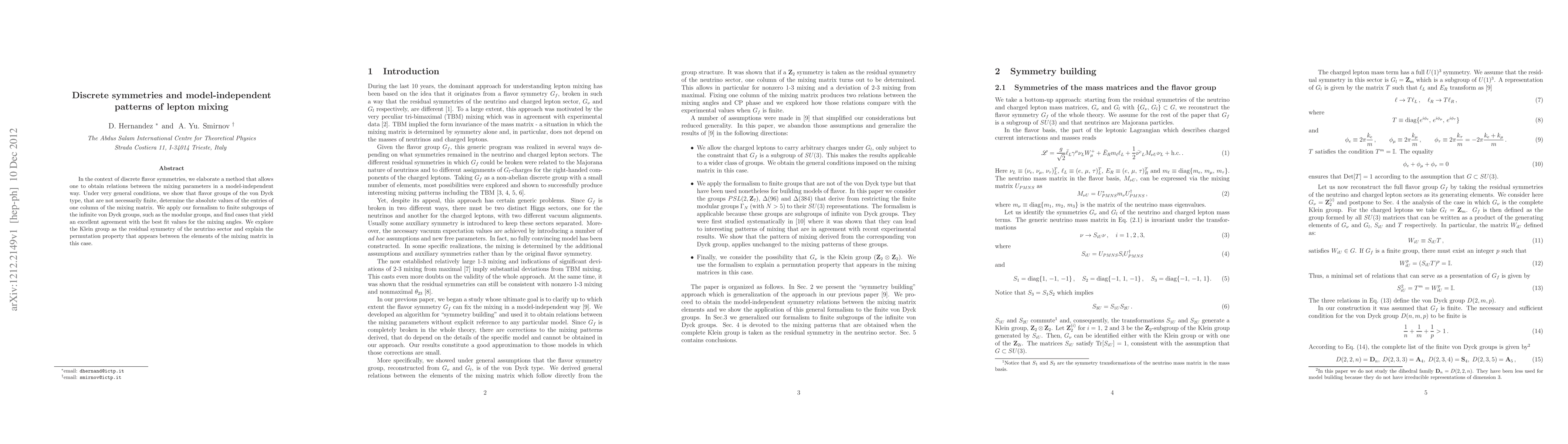 Researchers developed a method to analyze lepton mixing patterns in discrete flavor symmetries, finding cases where finite subgroups of infinite groups, like modular groups, yield excellent agreement with experimental data.