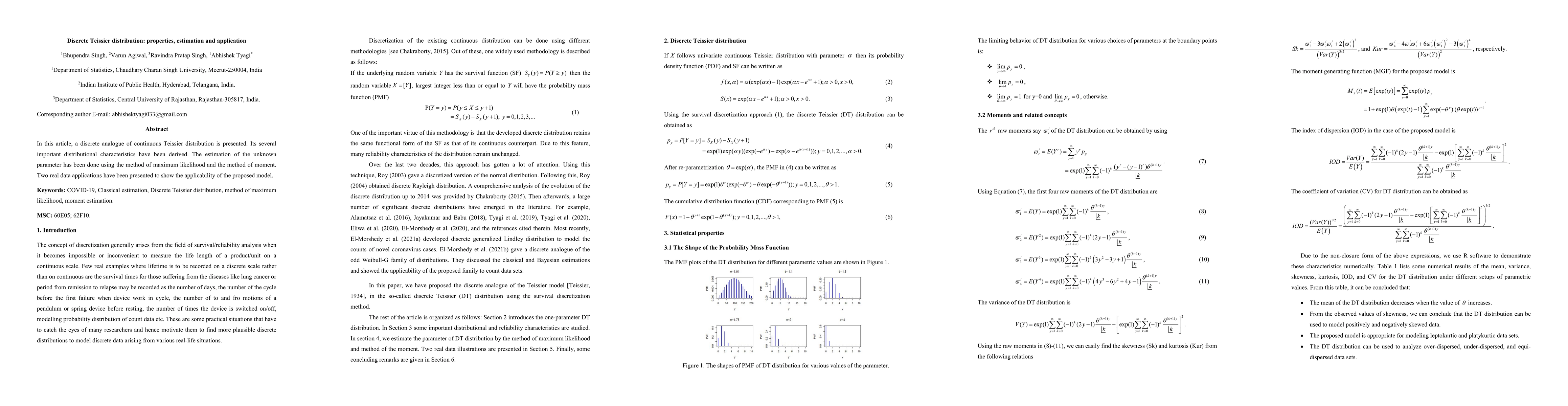 Researchers developed a discrete analogue of the Teissier distribution, deriving its properties and estimating parameters using maximum likelihood and moment methods. The model was applied to two real data sets to demonstrate its applicability.