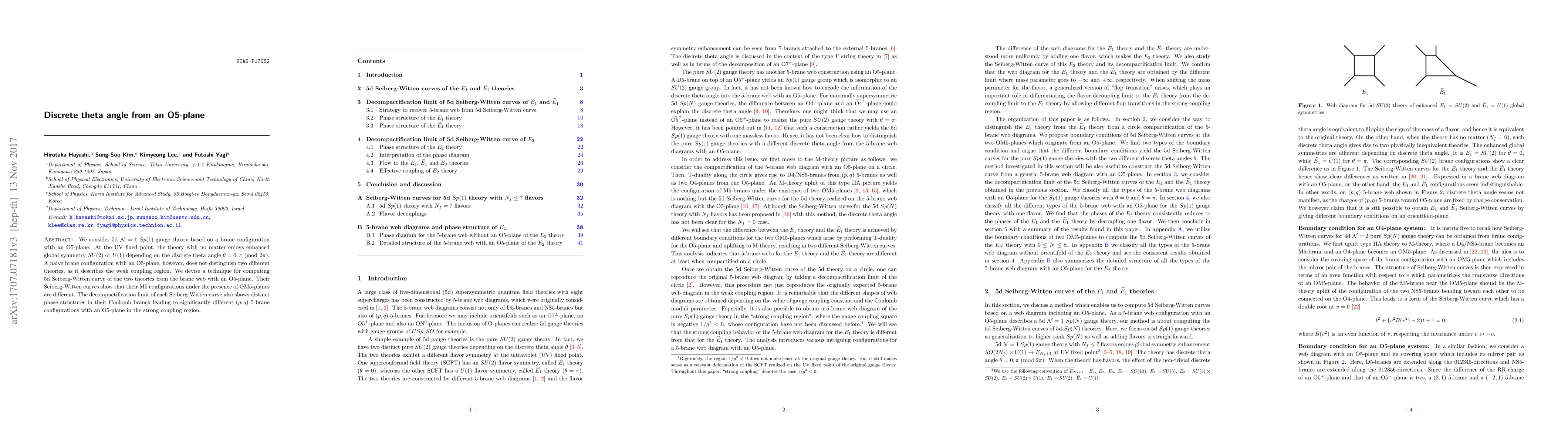 This research paper explores how a brane configuration with an O5-plane leads to distinct 5d theories with different symmetry enhancements and M5 configurations, depending on the discrete theta angle.