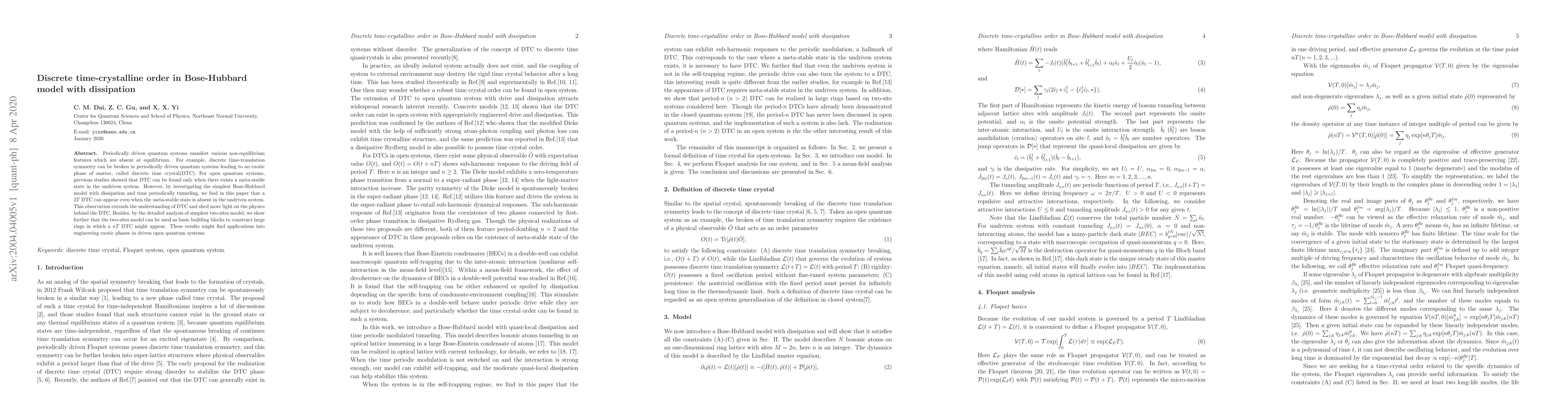 Periodically driven quantum systems manifest various non-equilibrium features which are absent at equilibrium. For example, discrete time-translation symmetry can be broken in periodically driven quantum systems leading to an exotic phase of matter, called discrete time crystal(DTC). For open quantum systems, previous studies showed that DTC can be found only when there exists a meta-stable state in the undriven system. However, by investigating the simplest Bose-Hubbard model with dissipation and time periodically tunneling, we find in this paper that a $2T$ DTC can appear even when the meta-stable state is absent in the undriven system. This observation extends the understanding of DTC and shed more light on the physics behind the DTC. Besides, by the detailed analysis of simplest two-sites model, we show further that the two-sites model can be used as basic building blocks to construct large rings in which a $nT$ DTC might appear. These results might find applications into engineering exotic phases in driven open quantum systems.