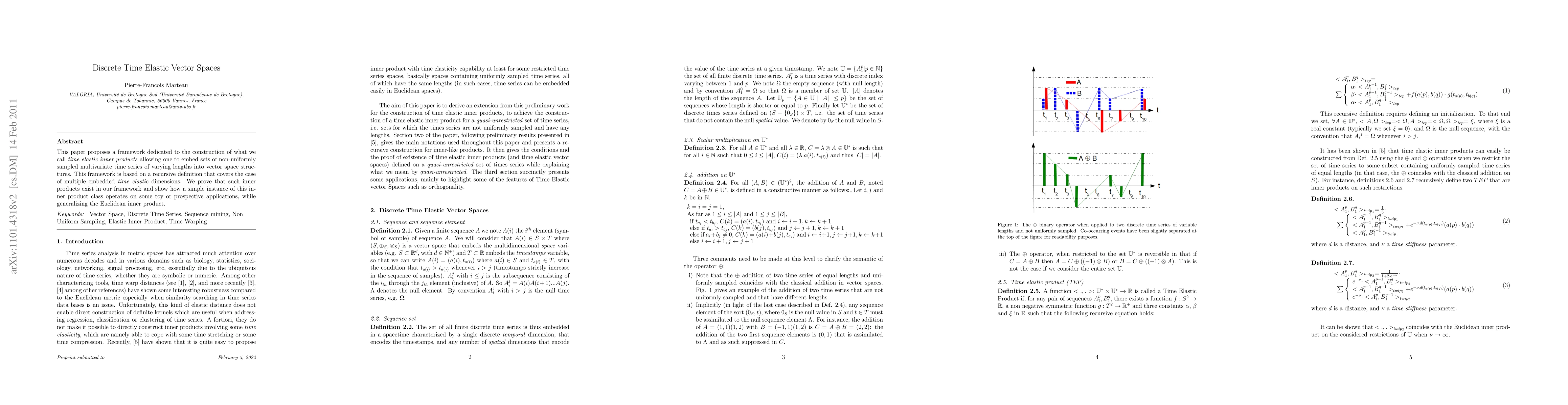 This paper introduces a framework for creating 'time elastic inner products', enabling non-uniformly sampled, varying-length multivariate time series to be embedded into vector spaces. The framework is recursive, accommodating multiple time elastic dimensions, and proven to generalize the Euclidean inner product.