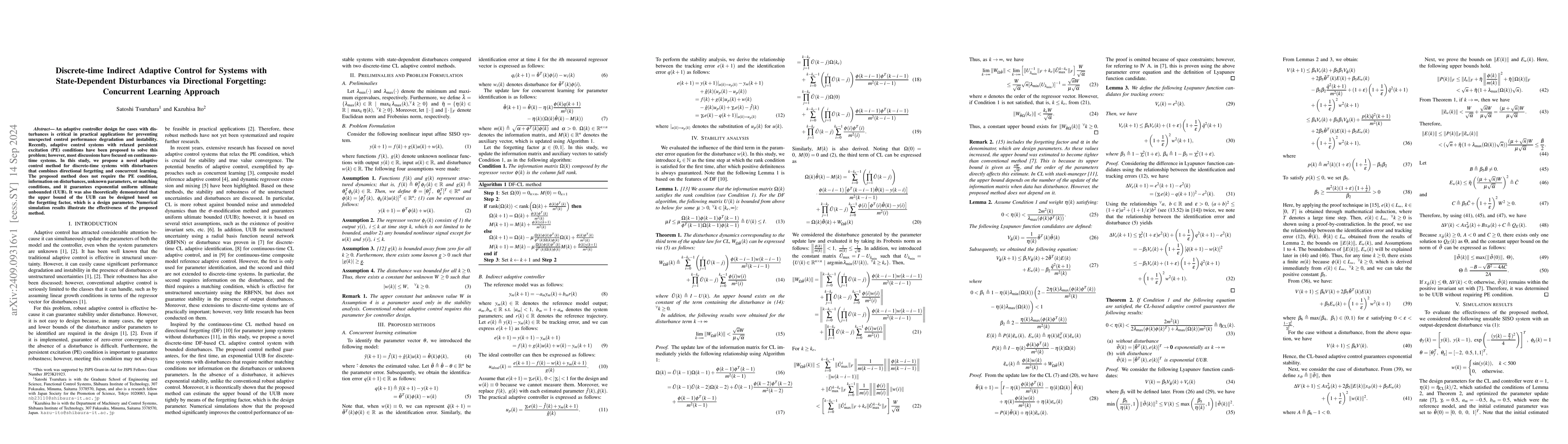 This paper proposes a novel adaptive control method for discrete-time systems with state-dependent disturbances using directional forgetting and concurrent learning, without requiring persistent excitation conditions or disturbance information, ensuring exponential stability. Simulation results validate the effectiveness of the new control design.
