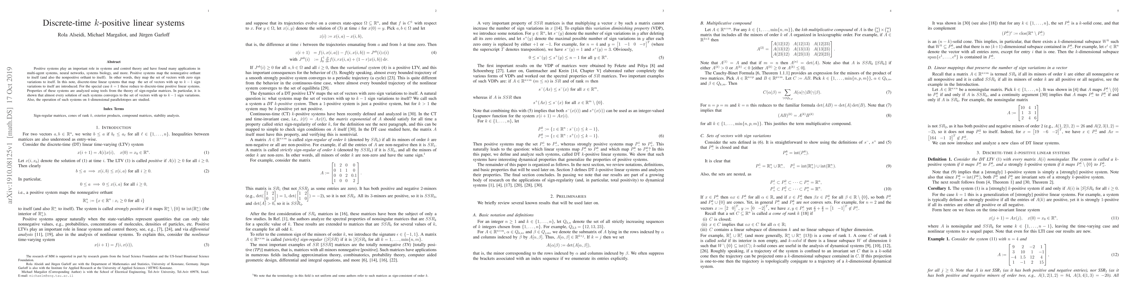 The research focuses on discrete-time k-positive linear systems, analyzing properties using tools from sign-regular matrices.
