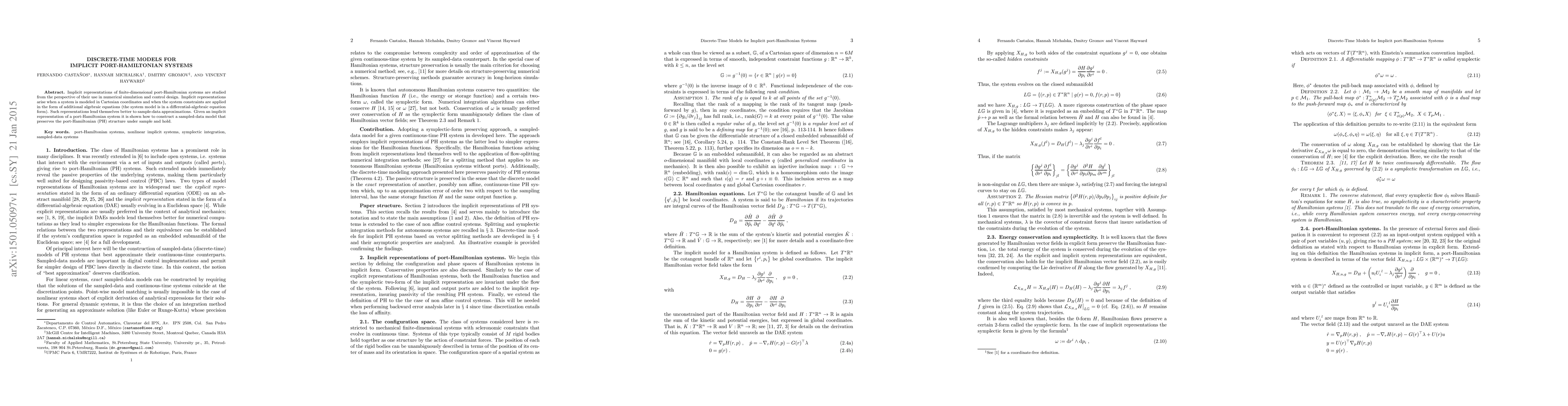 Implicit representations of finite-dimensional port-Hamiltonian systems are studied from the perspective of their use in numerical simulation and control design. Implicit representations arise when a system is modeled in Cartesian coordinates and when the system constraints are applied in the form of additional algebraic equations (the system model is in a DAE form). Such representations lend themselves better to sample-data approximations. An implicit representation of a port-Hamiltonian system is given and it is shown how to construct a sampled-data model that preserves the port-Hamiltonian structure under sample and hold.