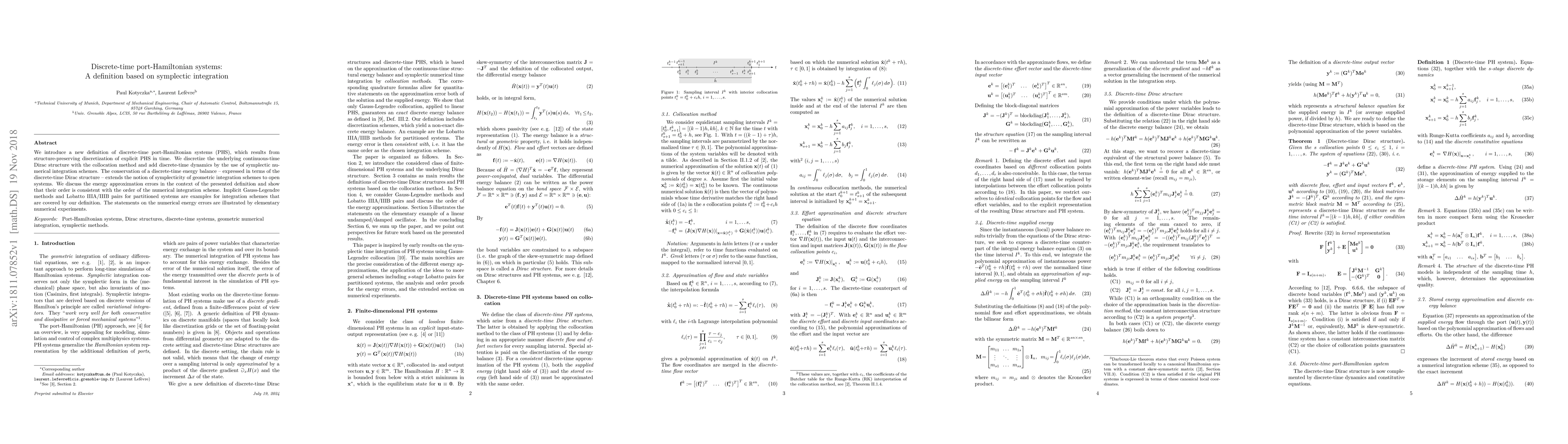 This paper introduces a new definition for discrete-time port-Hamiltonian systems based on symplectic integration, preserving the structure through collocation methods and numerical integration schemes. It discusses energy approximation errors and demonstrates their consistency with the integration scheme order, illustrated by numerical experiments.