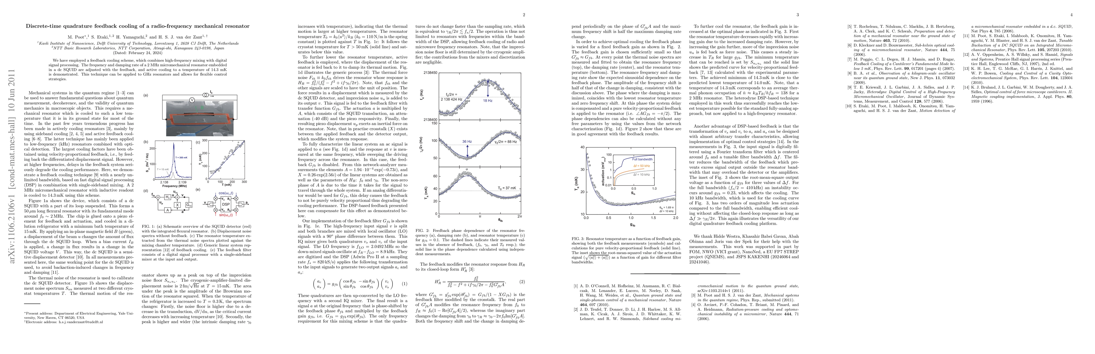This paper details a feedback cooling method using high-frequency mixing and digital signal processing to cool a 2 MHz micromechanical resonator to 14.3 mK, demonstrating its potential for GHz resonators and flexible control strategies.