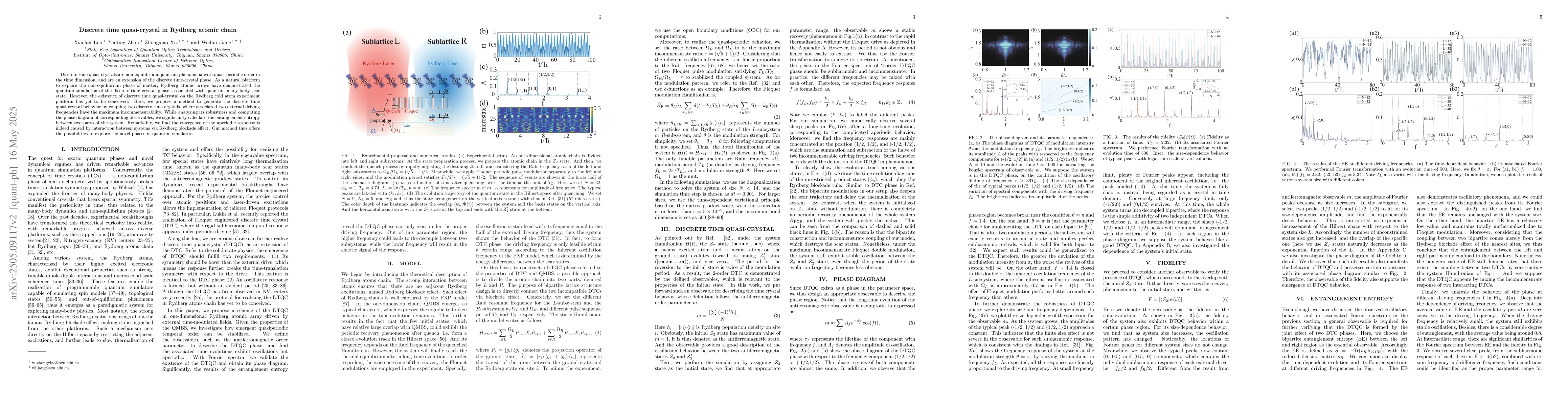 Development of a method to generate discrete time quasi-crystal behavior in Rydberg atomic chains through coupling discrete time-crystals with maximum incommensurability in driving frequencies.