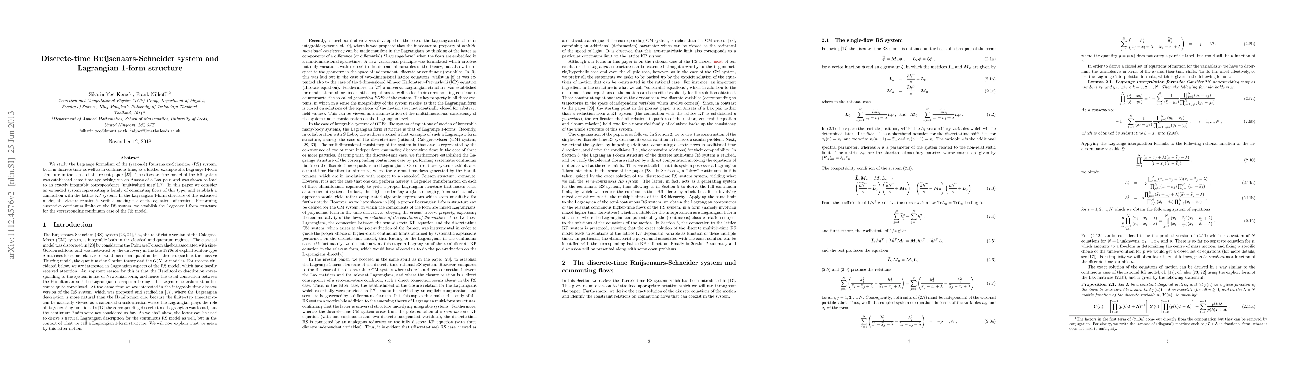 This paper establishes a Lagrange 1-form structure for the discrete-time Ruijsenaars-Schneider system and its continuum limit, verifying closure relations and connections to other systems.