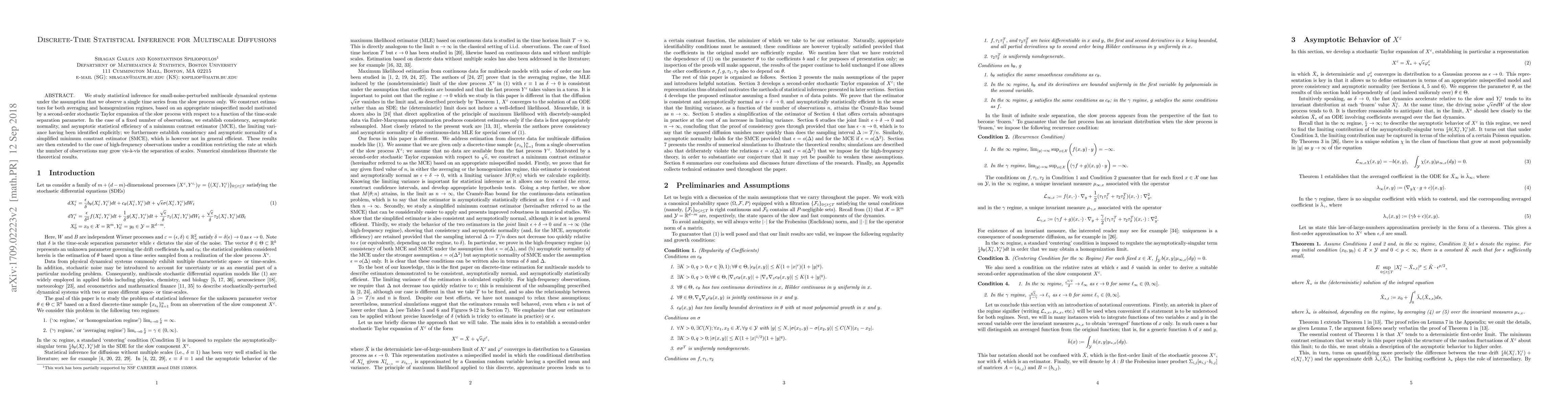 This paper develops statistical inference methods for small-noise-perturbed multiscale diffusions observed through a single time series from the slow process. It constructs estimators for averaging and homogenization, proving consistency, asymptotic normality, and efficiency for a minimum contrast estimator, alongside a less efficient but simpler alternative. The results are extended to high-frequency observations under specific growth conditions.