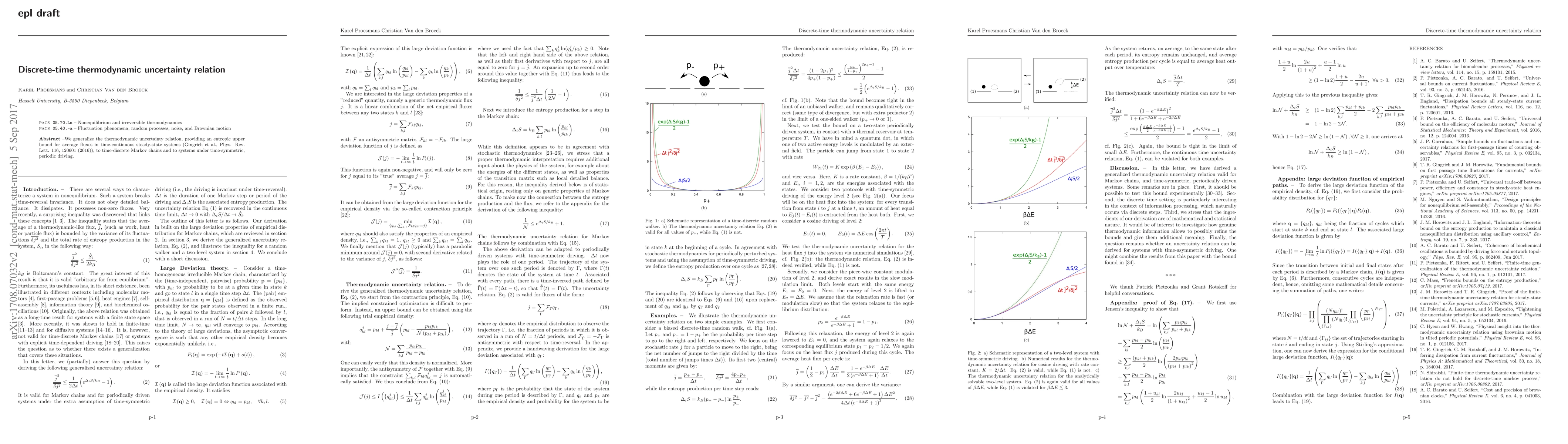 This paper generalizes the thermodynamic uncertainty relation to time-discrete Markov chains and periodic driving, providing an entropic upper bound for average fluxes in steady-state systems. The findings extend previous continuous-time results to discrete-time scenarios.
