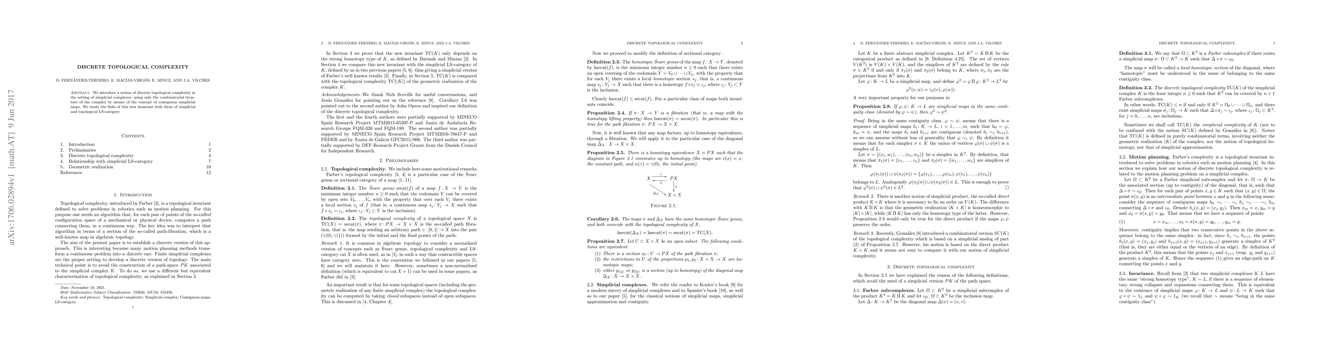 This paper introduces a discrete topological complexity for simplicial complexes based on contiguous simplicial maps, and explores its connections to simplicial and topological LS-category. The study aims to provide a combinatorial invariant that complements existing topological measures.