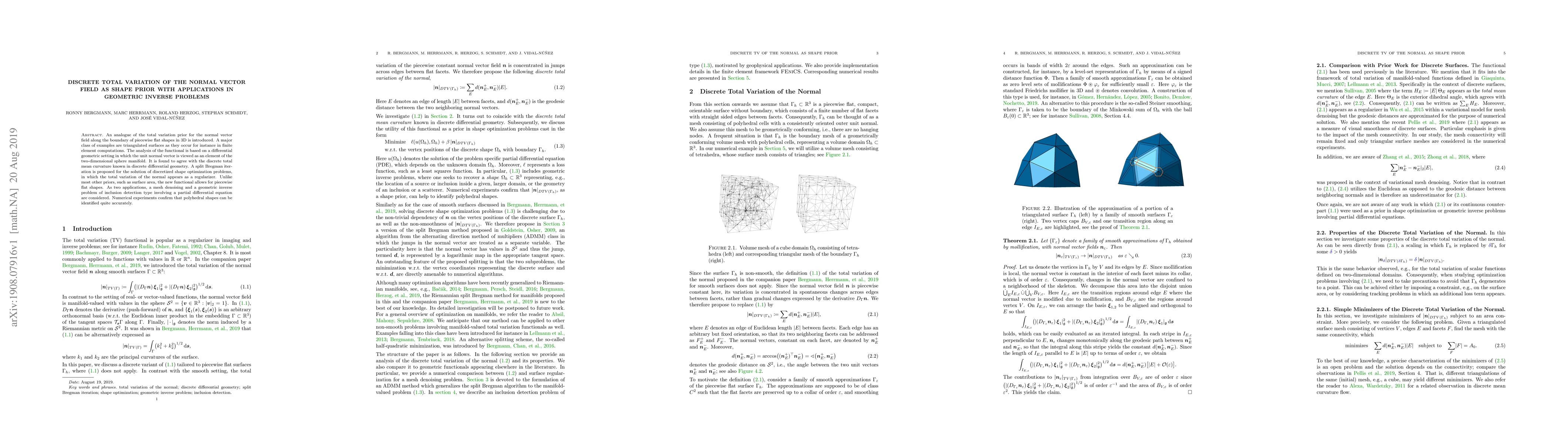 This paper introduces a discrete total variation prior for the normal vector field along the boundaries of 3D piecewise flat shapes, applicable to triangulated surfaces. It proposes a Bregman iteration method for solving discretized shape optimization problems, demonstrating its effectiveness through mesh denoising and inclusion detection in geometric inverse problems.