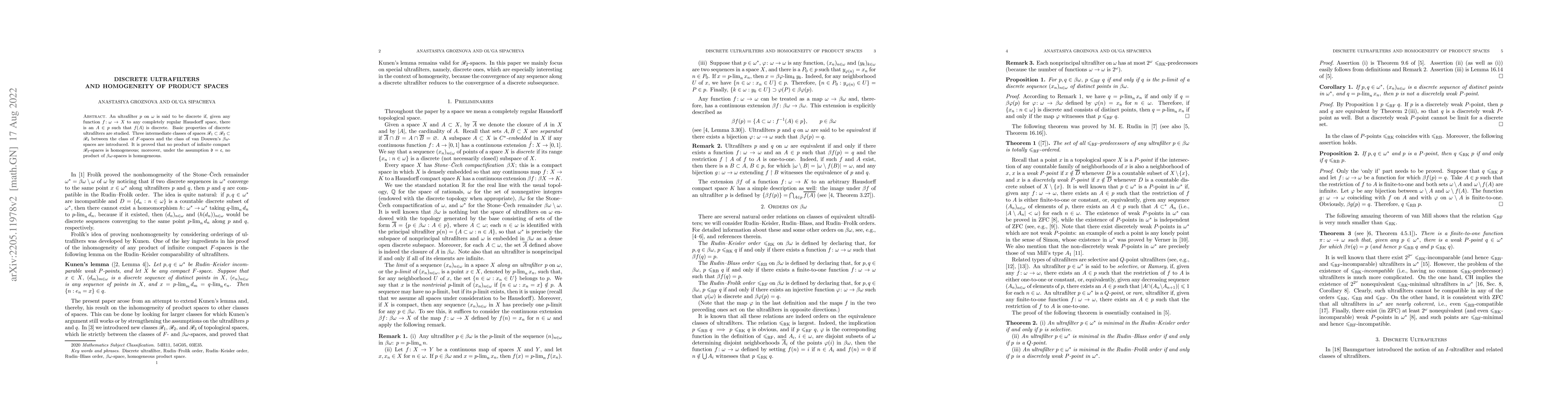This paper studies discrete ultrafilters and explores their properties, introducing three classes of spaces between $F$-spaces and $\beta\omega$-spaces. It proves that no product of infinite compact $\mathscr R_2$-spaces is homogeneous, and under the assumption $\mathfrak d =\mathfrak c$, no product of $\beta\omega$-spaces is homogeneous.