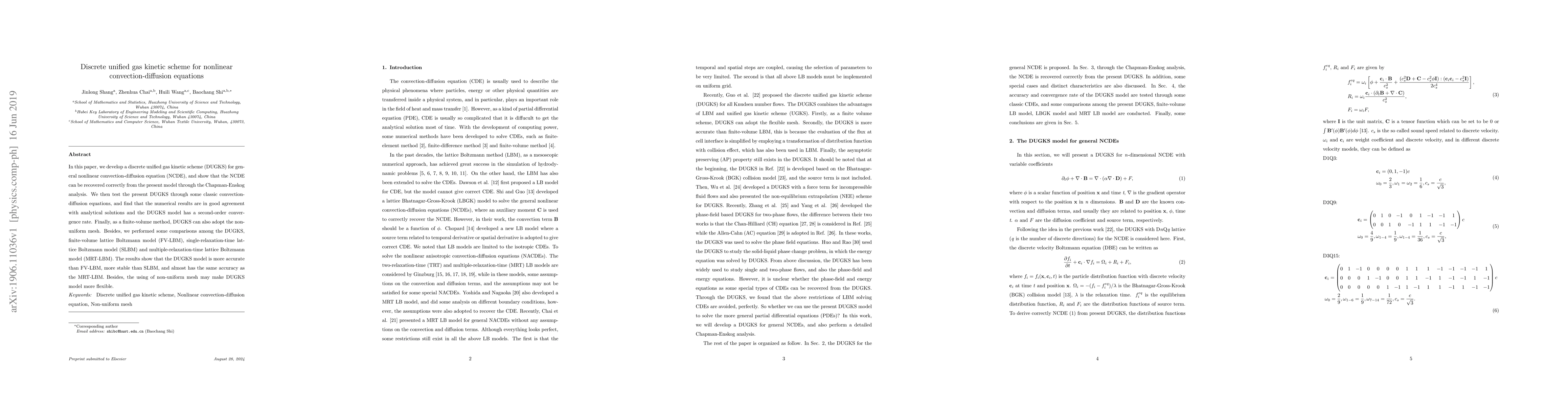 This paper introduces a discrete unified gas kinetic scheme (DUGKS) for solving nonlinear convection-diffusion equations, demonstrating its accuracy and second-order convergence through classic tests. The DUGKS model is shown to be more accurate and stable than competing lattice Boltzmann methods and can utilize non-uniform meshes for added flexibility.