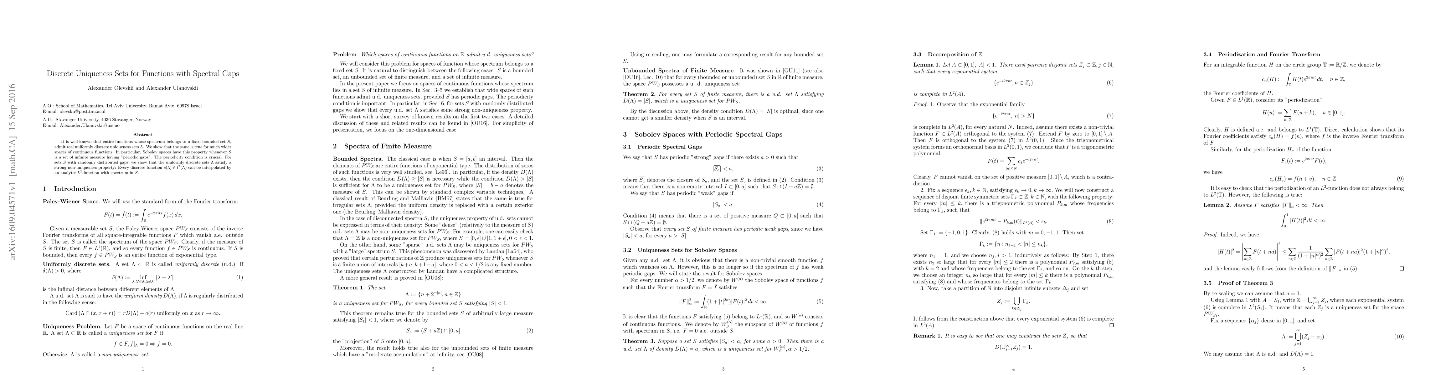 This paper demonstrates that entire functions and certain continuous functions in Sobolev spaces, with spectra confined to bounded sets $S$ with periodic gaps, possess real uniformly discrete uniqueness sets $\Lambda$. Conversely, for sets $S$ with randomly distributed gaps, any discrete function can be interpolated by an analytic $L^2$-function with spectrum in $S$, indicating a lack of uniqueness.