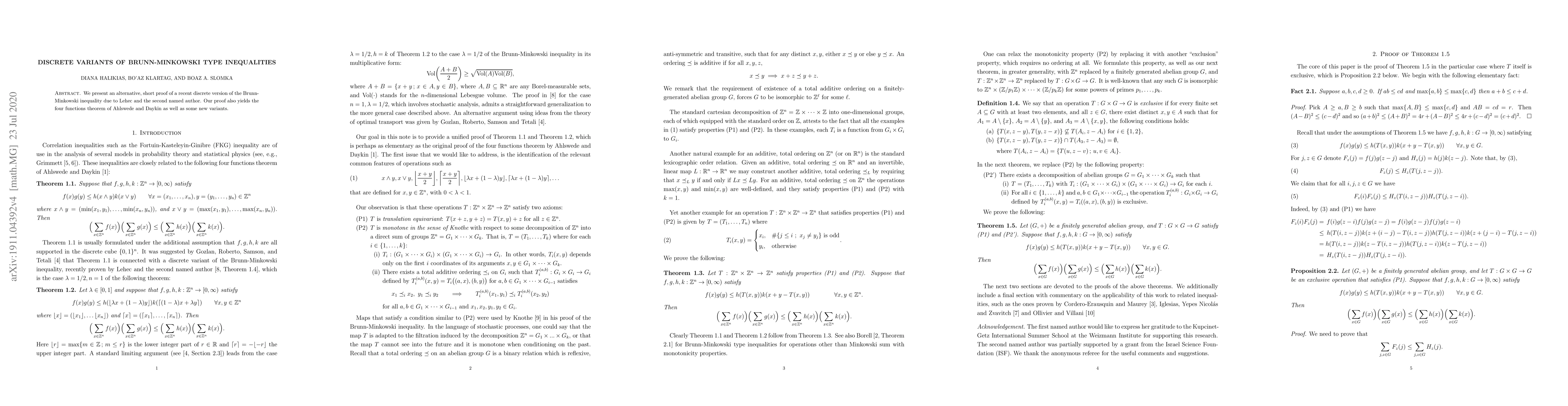 This paper provides a concise proof for a discrete version of the Brunn-Minkowski inequality, also deriving the Ahlswede-Daykin four functions theorem and introducing new variants.