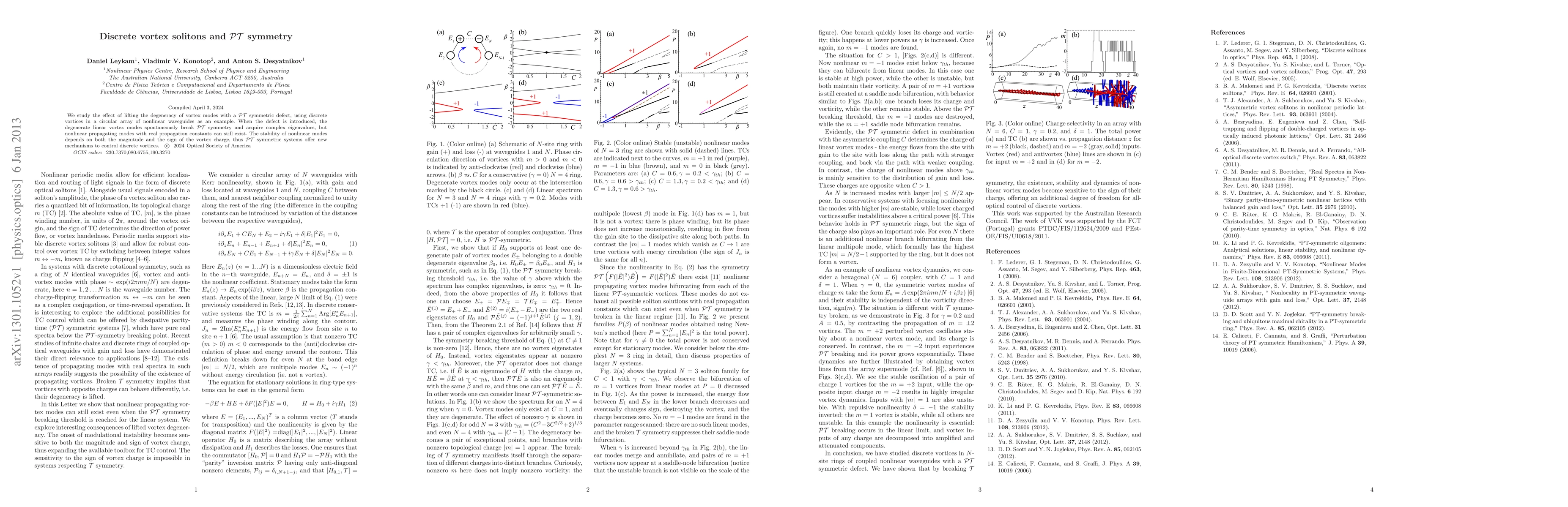 The paper presents a detailed analysis of discrete vortex solitons in PT symmetric systems, revealing new mechanisms for controlling vortex topological charges through the sensitivity of nonlinear mode stability to both magnitude and sign of vortex charge.