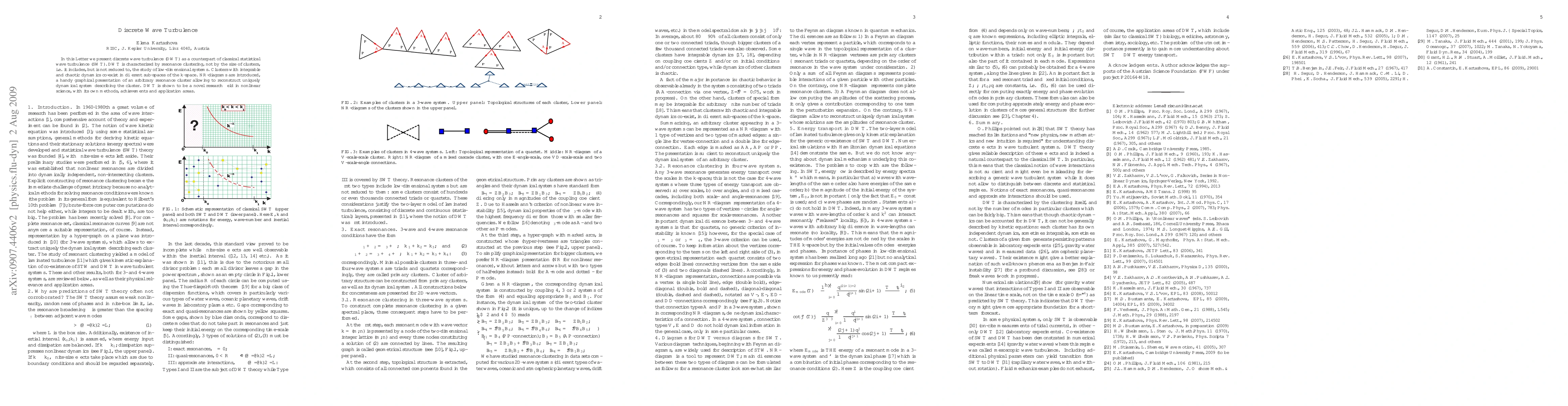 The paper introduces Discrete Wave Turbulence (DWT) as a distinct field from classical statistical wave turbulence, focusing on resonance clustering rather than cluster size. It presents NR-diagrams for visualizing resonance clusters and reconstructing the dynamical systems describing them, positioning DWT as a novel area of study in nonlinear science with unique methods and applications.