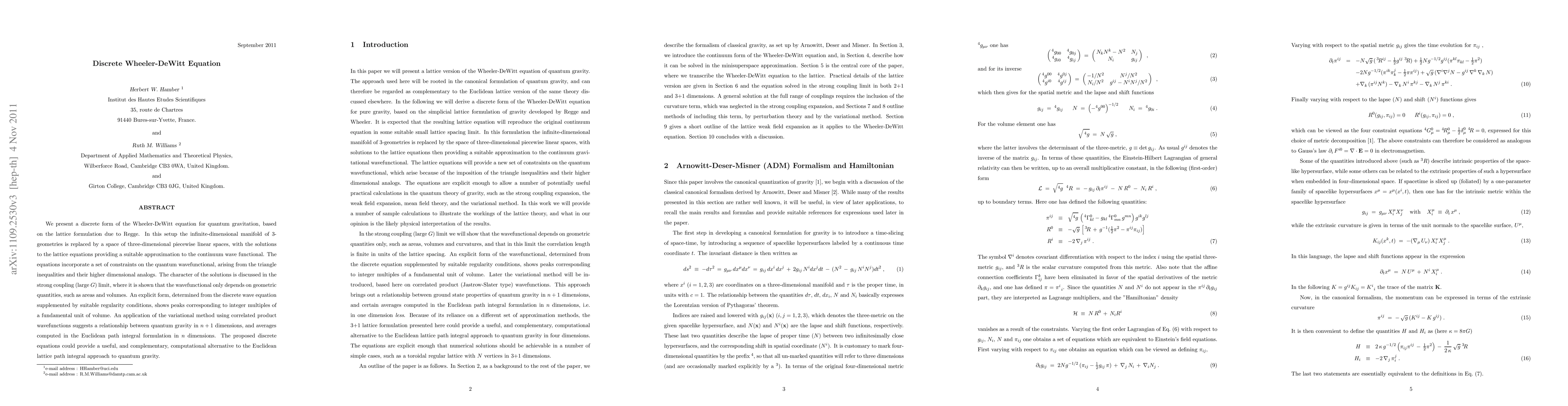 Researchers develop a discrete version of the Wheeler-DeWitt equation for quantum gravity, showing that solutions depend on geometric quantities in high-energy limit; this discrete approach may provide an alternative to existing methods.