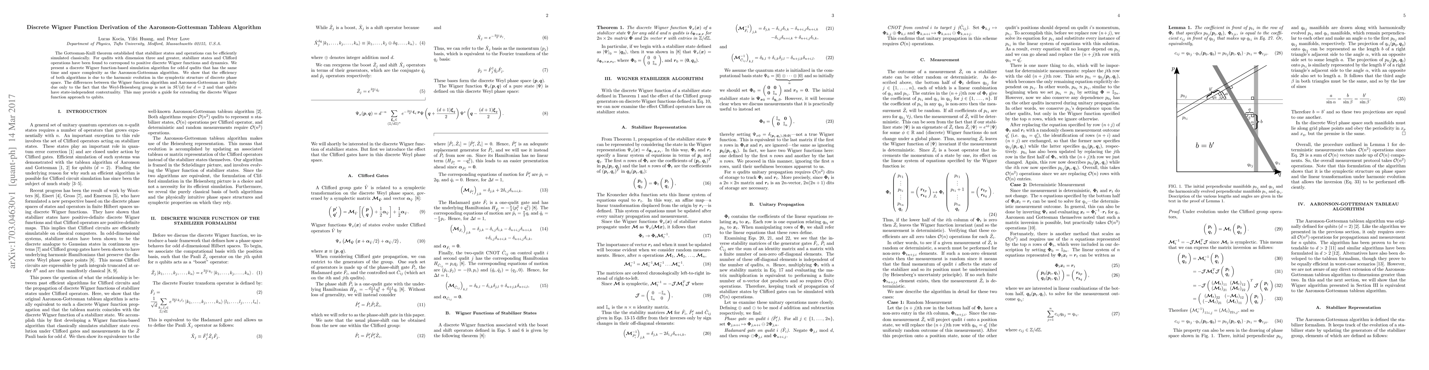 This paper proposes a discrete Wigner function-based algorithm for simulating odd-dimensional qudits, achieving the same efficiency as the Aaronson-Gottesman algorithm, attributed to harmonic evolution in the symplectic structure. The differences from the Aaronson-Gottesman approach are likely due to the unique properties of qubits.